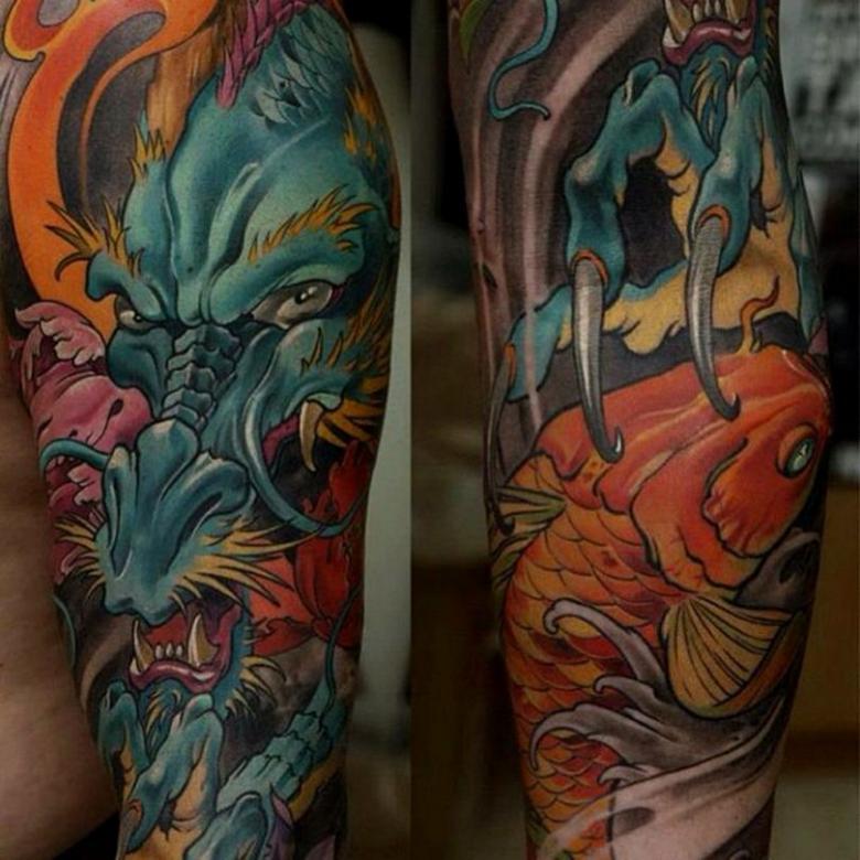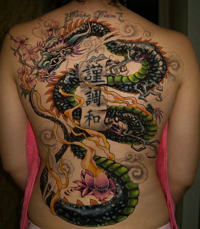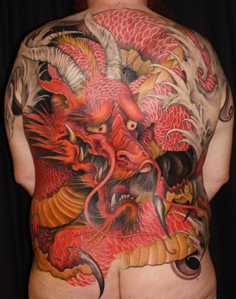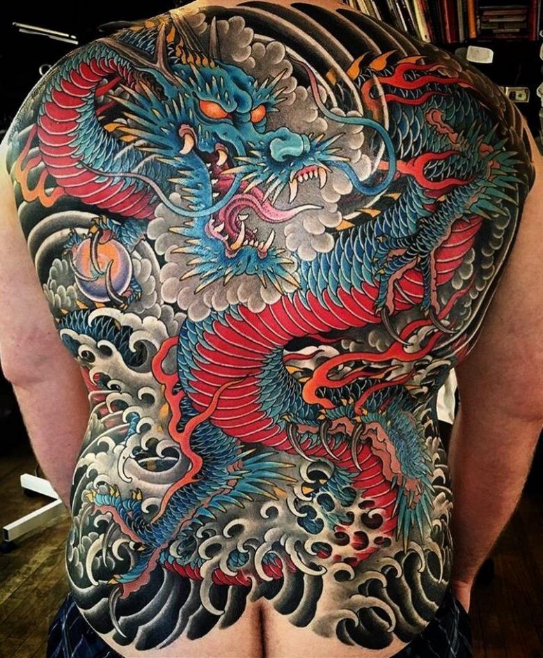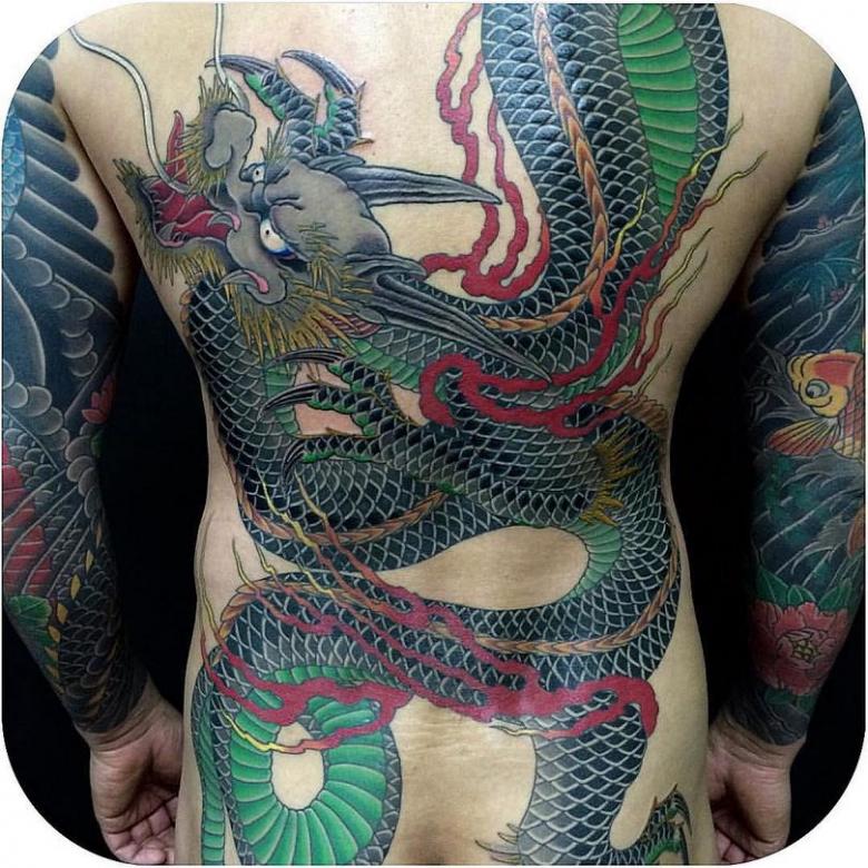 Une peinture japonaise spéciale appelée nara a été fabriquée. Notamment, il a pris une couleur bleu-vert sous la peau. Par conséquent, les tatouages orientaux nécessitent généralement une belle peinture multicolore. L'image orientale la plus célèbre est le dragon. Il est dessiné dans des teintes dorées, noires et rouges. Parfois, des couleurs vertes et violettes sont utilisées.