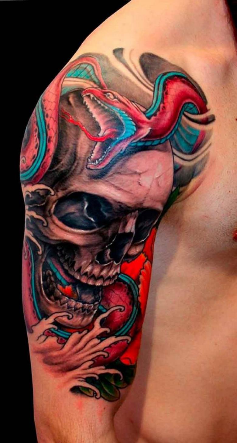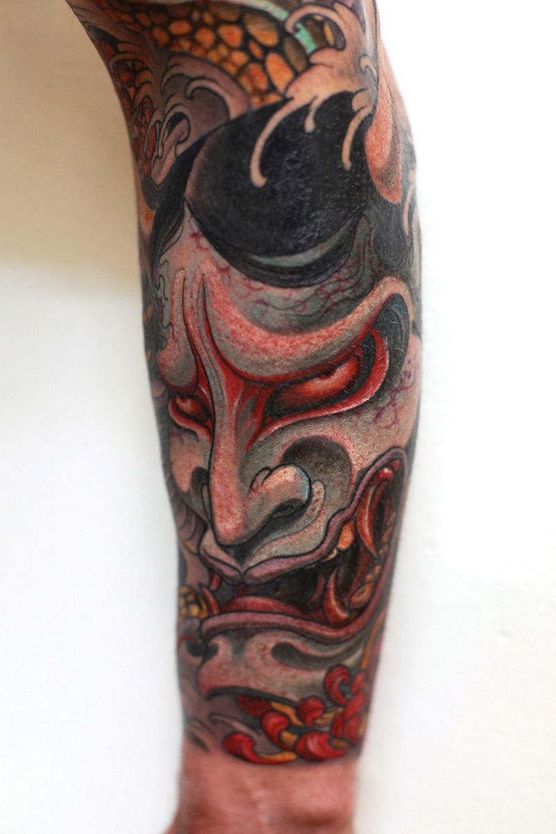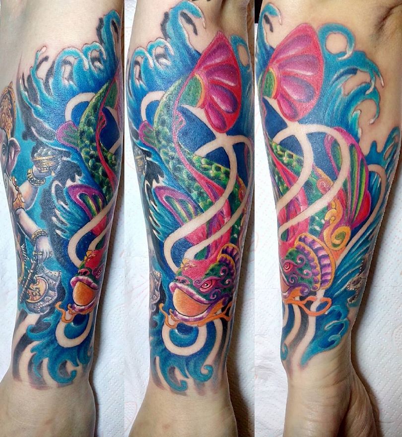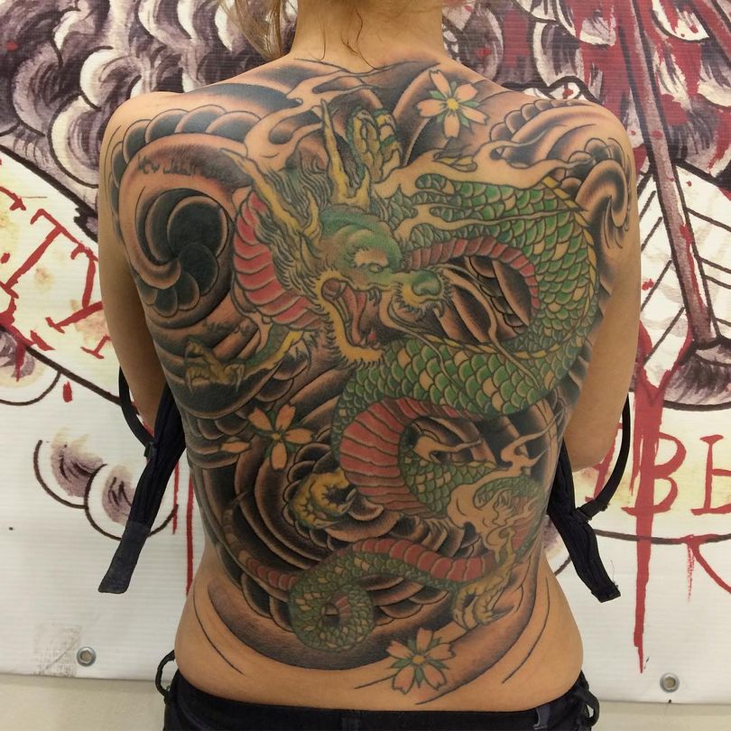 Une peinture japonaise spéciale appelée nara a été fabriquée. Notamment, il a pris une couleur bleu-vert sous la peau. Par conséquent, les tatouages orientaux nécessitent généralement une belle peinture multicolore. L'image orientale la plus célèbre est le dragon. Il est dessiné dans des teintes dorées, noires et rouges. Parfois, des couleurs vertes et violettes sont utilisées.
