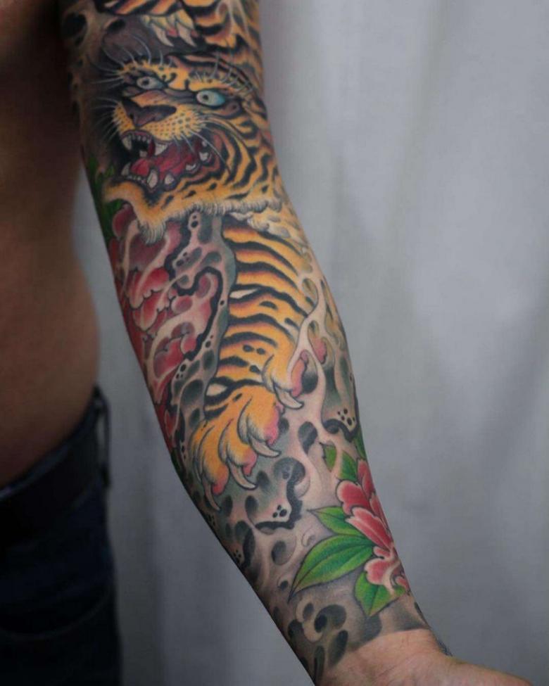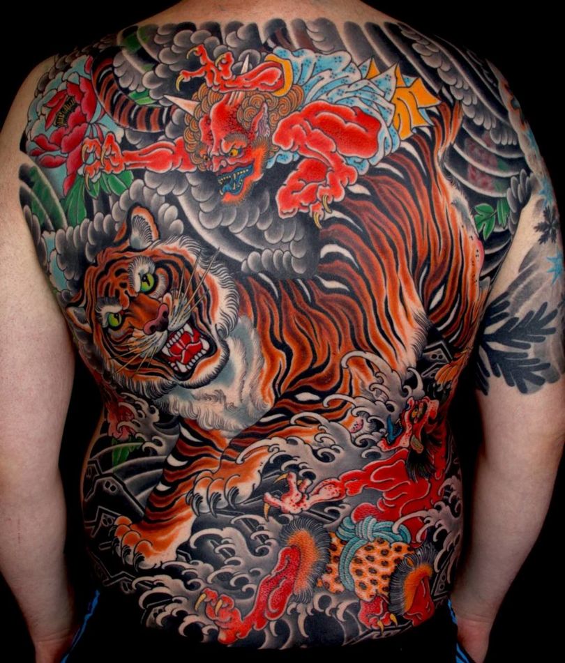 Le dessin d'un tigre indique aux autres que son porteur est résolu et honnête. En outre, le tigre apporte le succès et l'argent. La geisha est un symbole de grâce et d'habileté. Leurs portraits sont généralement remplis de jeunes filles qui souhaitent ressembler à ces beautés orientales.