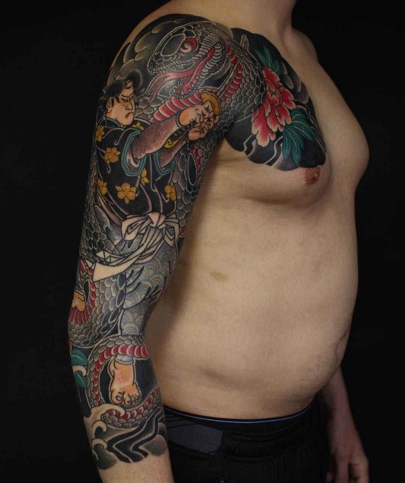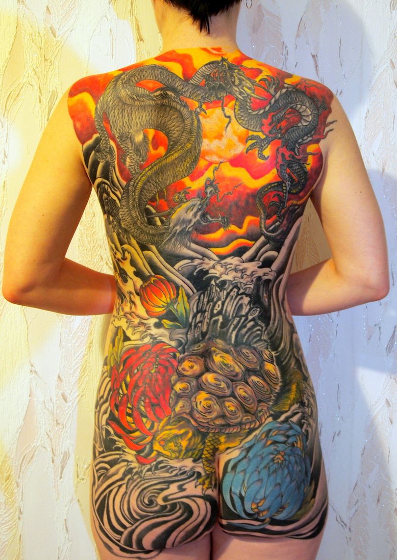 Au Japon, les tatouages traditionnels ne peuvent être réalisés que par des artisans de renom. Les chefs-d'œuvre sont réalisés sur une longue période, qui peut durer jusqu'à 5 ans. Un tatouage d'un costume, par exemple, prend autant de temps à réaliser. Il convient de noter qu'il s'agit d'un processus coûteux et douloureux.