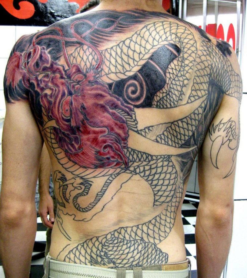 La pose du dragon peut être quelconque et ne dépend que des souhaits du client et des compétences de l'artisan. Des professionnels expérimentés peuvent réaliser un dessin qui donne au dragon un aspect plus vrai que nature lorsque le porteur effectue des mouvements. Ces tatouages attirent l'attention des spectateurs et sont de véritables chefs-d'œuvre en tant que performance animée sur vidéo.
