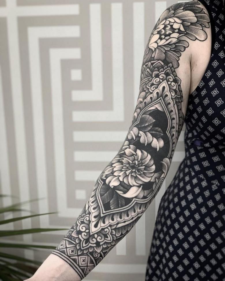 Tatouage dans le style ornemental - significations, motifs spectaculaires pour hommes et femmes, photos et vidéos