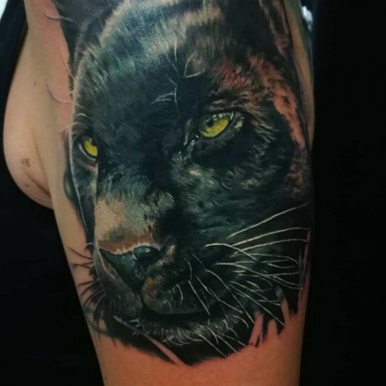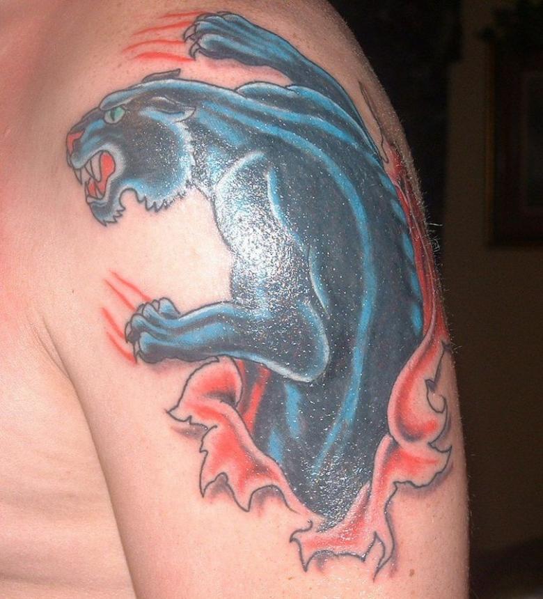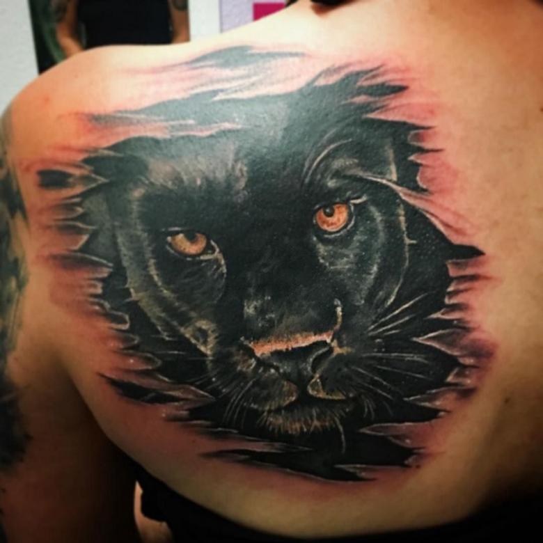 Parmi les nombreux lions, jaguars et tigres, on trouve assez régulièrement l'image d'une panthère noire, ainsi que des couguars. Ce chat sauvage attire l'attention des deux sexes, de tous ceux qui recherchent un design inhabituel et une idée frappante de rembourrage sur le corps.