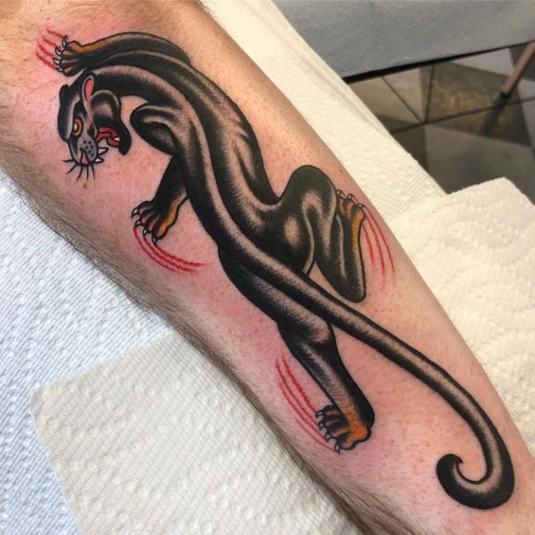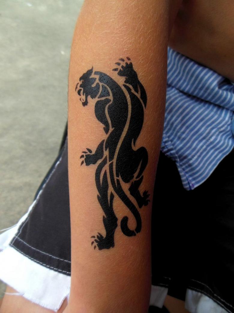 Les panthères se trouvent principalement dans la jungle, les zones montagneuses, les tropiques et les subtropiques. Des images de ce prédateur ont été appliquées sur le corps par différents peuples depuis les temps anciens. Les signes les plus populaires étaient chez les Indiens d'Amérique - la panthère signifiait l'intrépidité au combat, la stratégie et la préparation au combat.