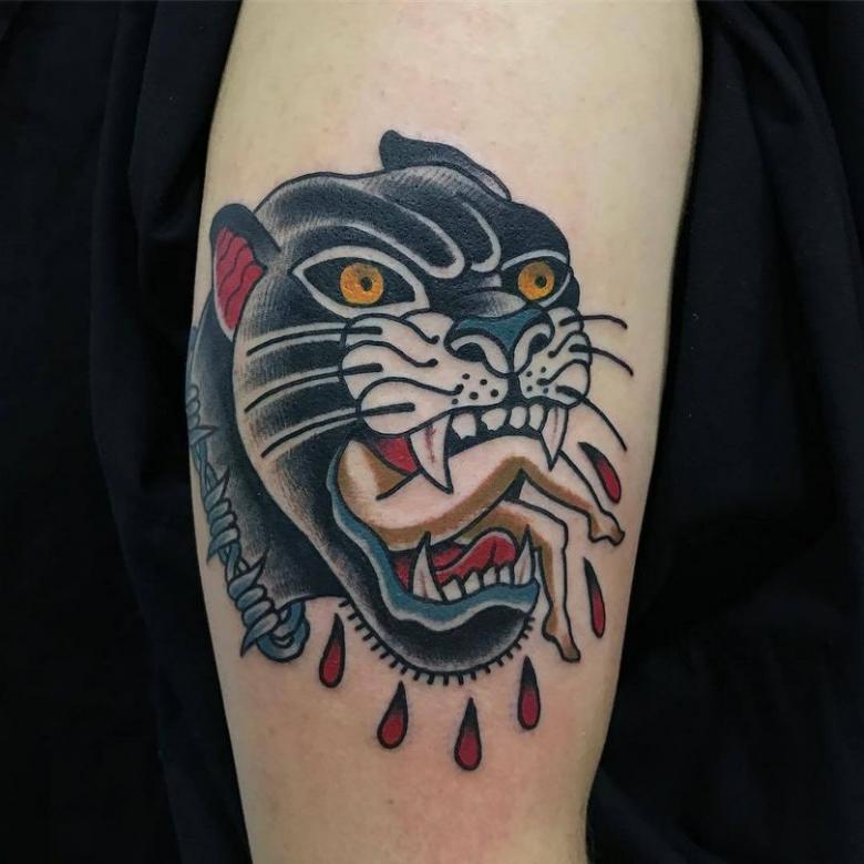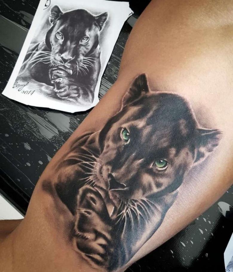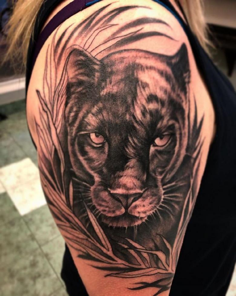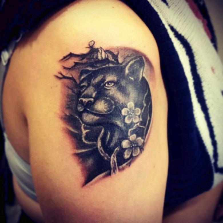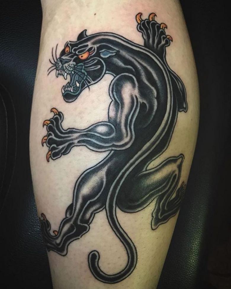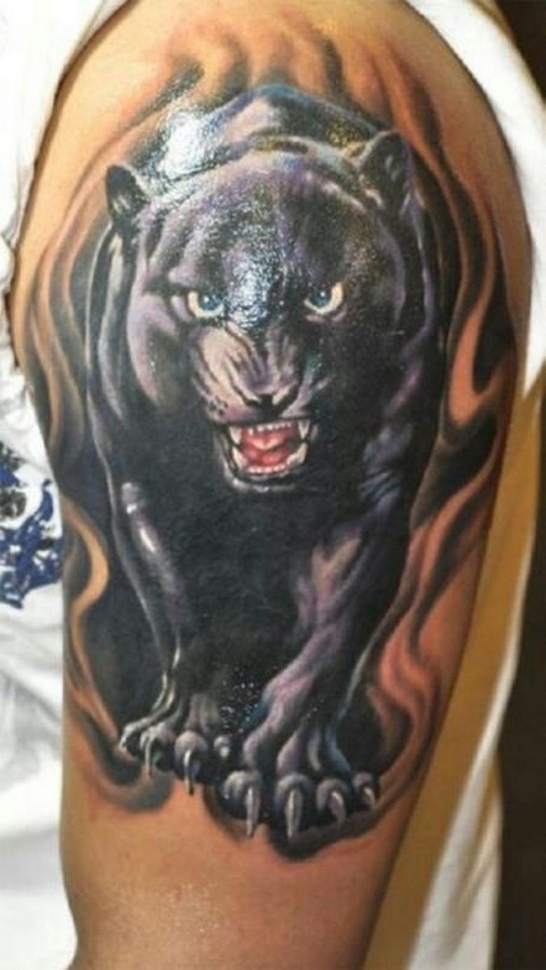 Tatouage panthère - significations pour les filles et les hommes, croquis amusants, photos sur le bras, l'épaule, la jambe, le dos, l'omoplate.