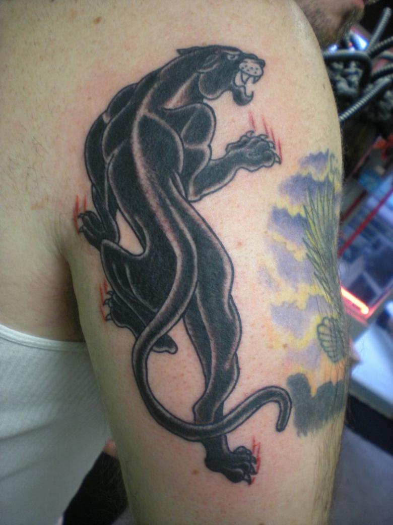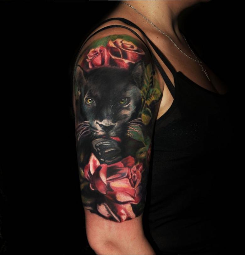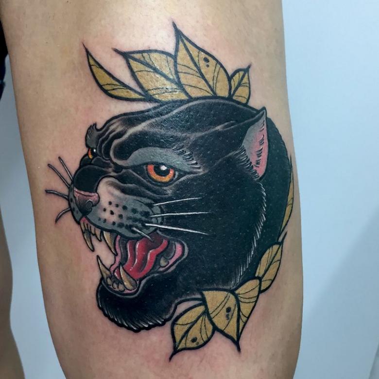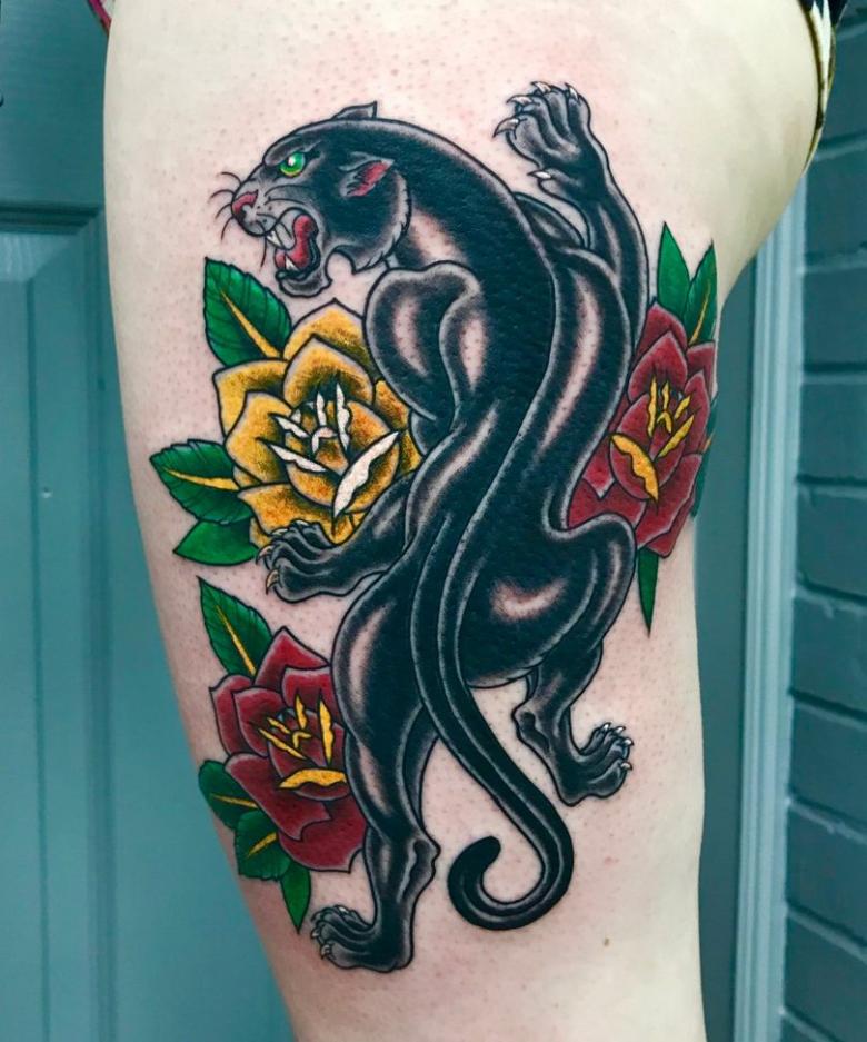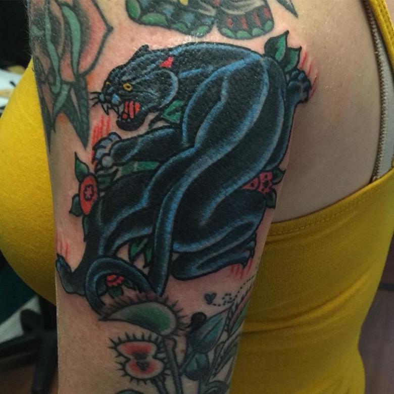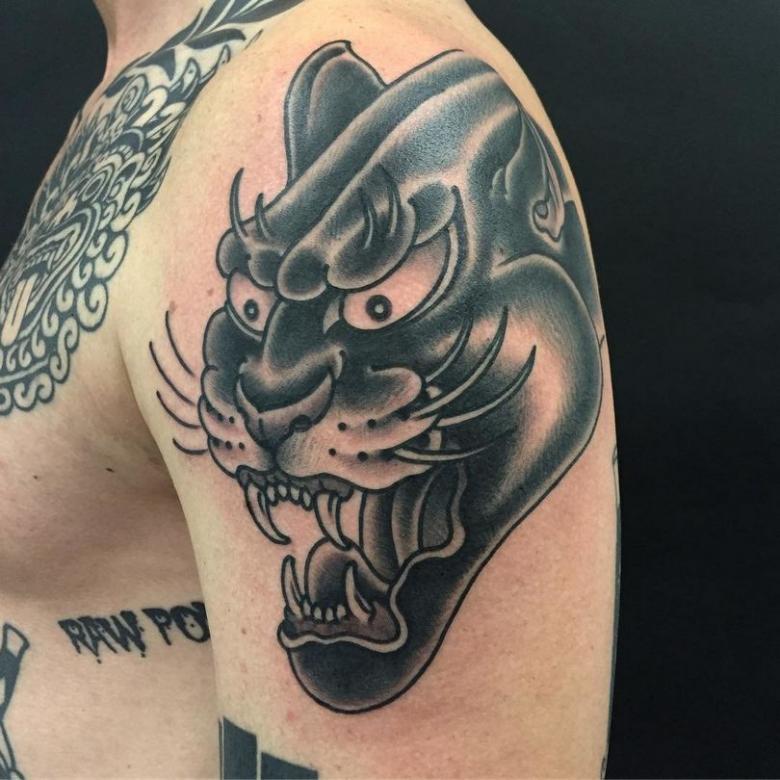 Tatouage panthère - significations pour les filles et les hommes, croquis amusants, photos sur le bras, l'épaule, la jambe, le dos, l'omoplate.