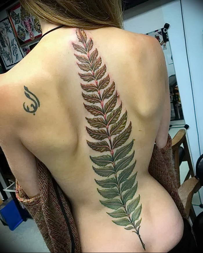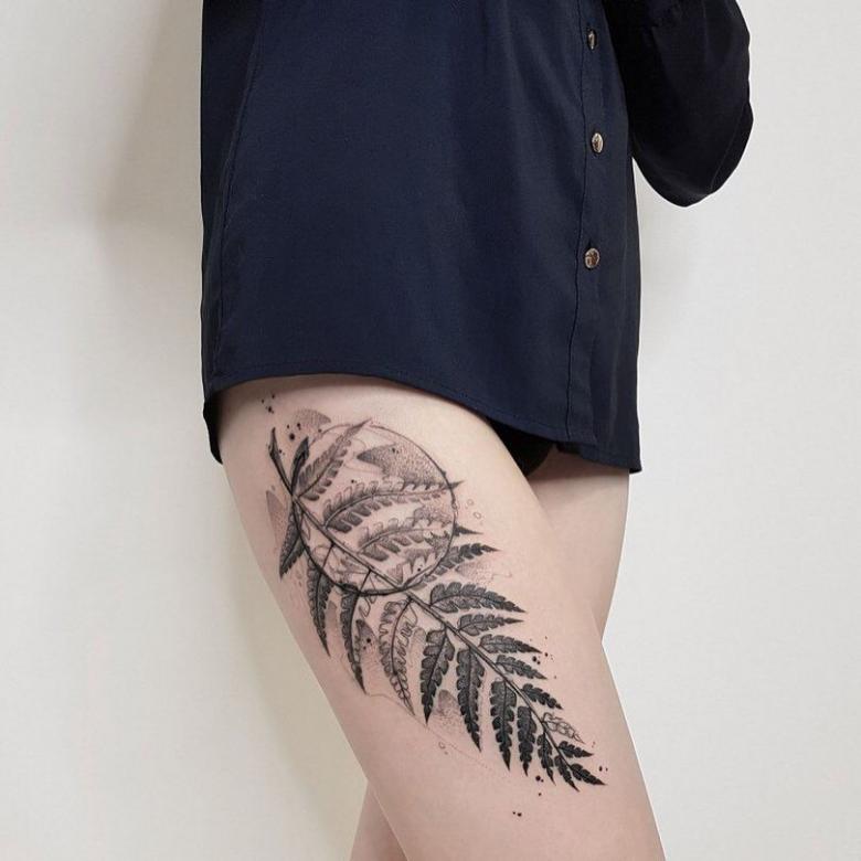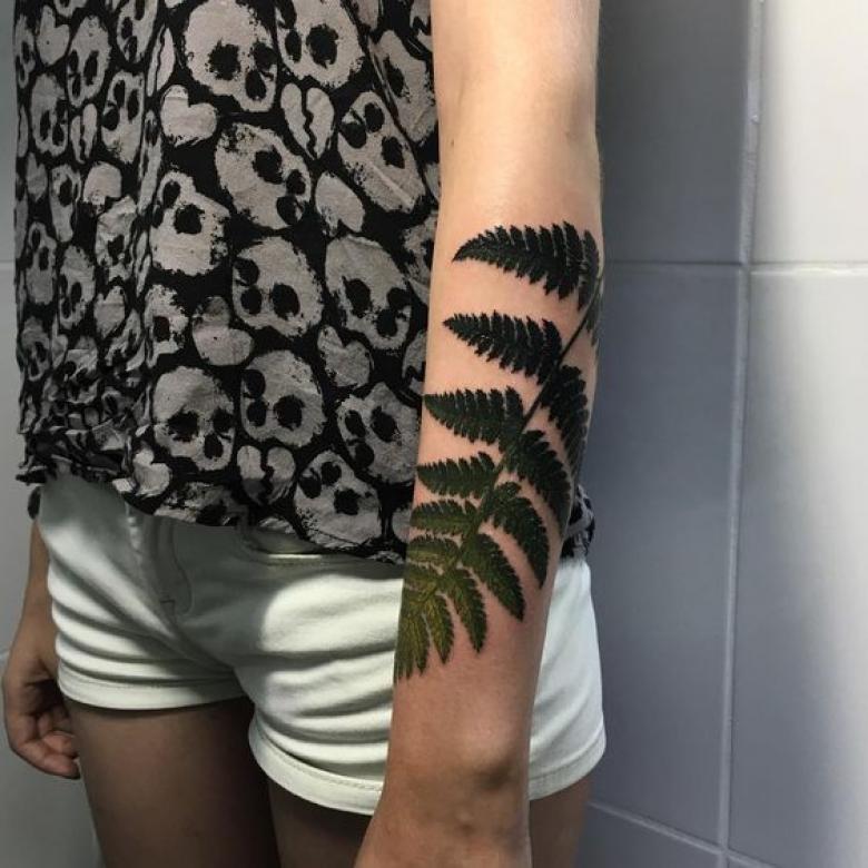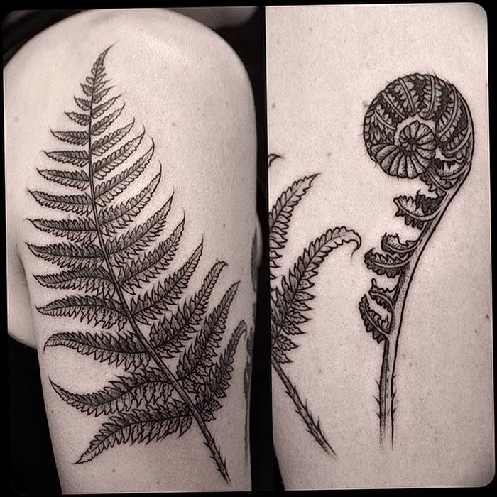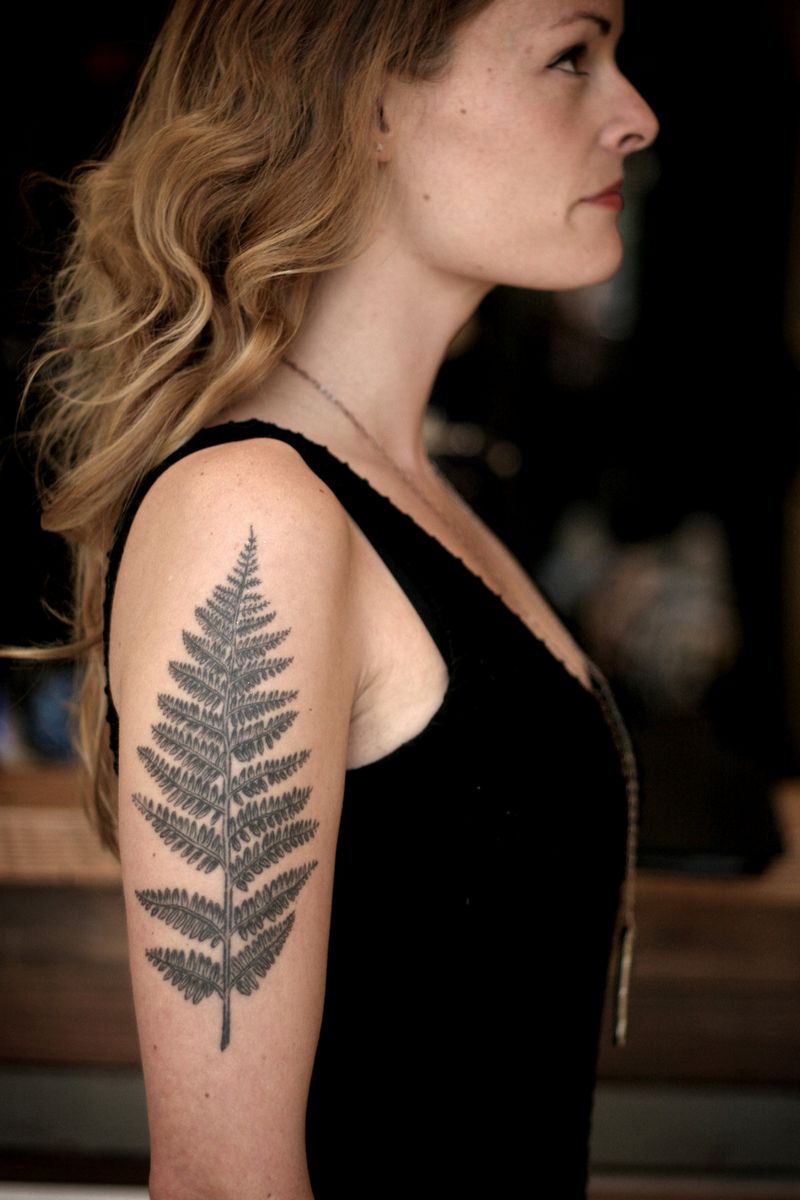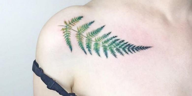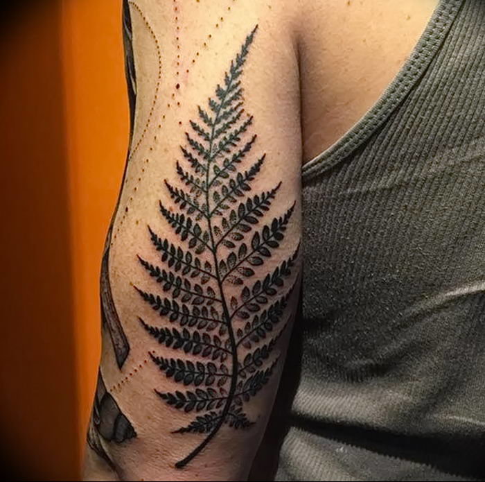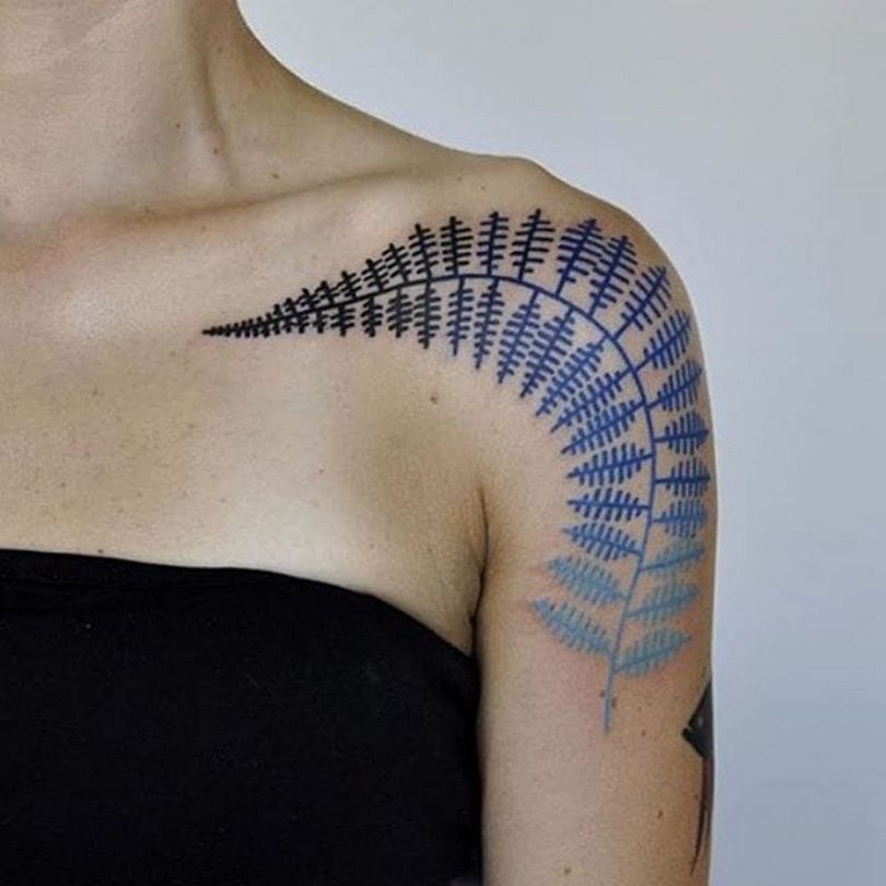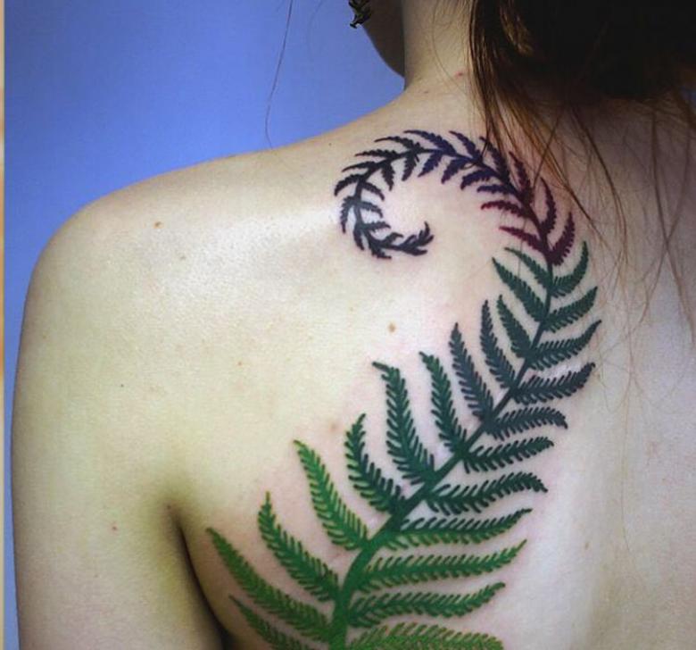 Le tatouage avec une fougère sur l'épaule d'une fille peut signifier un désespoir et une solitude, et une longue recherche du suicide, et le désir de trouver une connaissance magique du monde, réalisant son exclusivité.