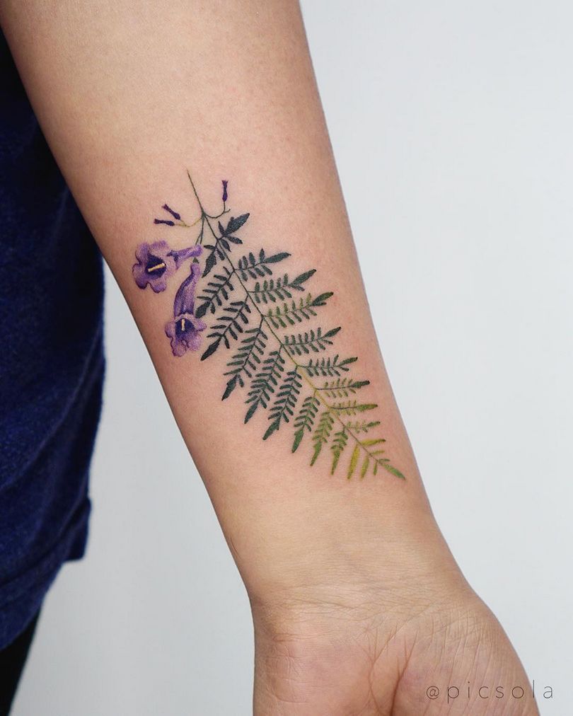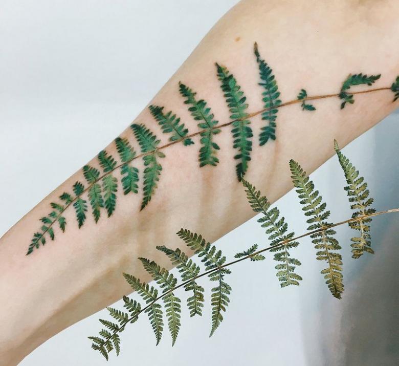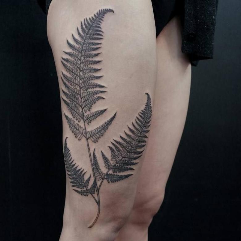 Tattoo Fern - une description complète de l'amulette, valeur pour les filles (y compris le tatouage de feuille et la fougère de fleur), les conceptions, où appliquer, de belles photos