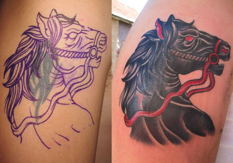 - L'application d'une nouvelle image par-dessus une ancienne image décolorée sans risque de la voir à nouveau à travers le tatouage.