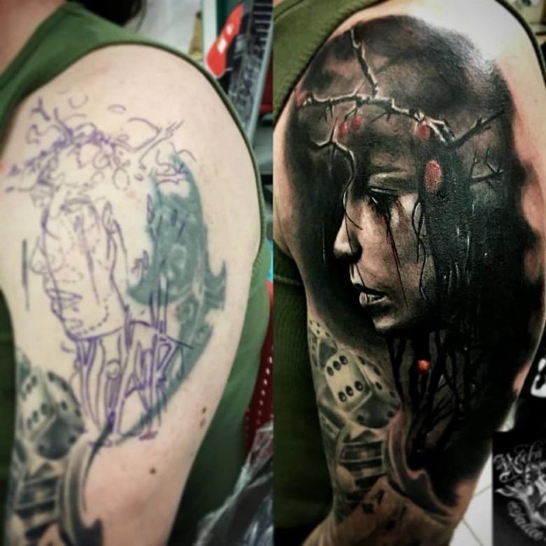 Les tatouages superposés sont un processus délicat et une décision délicate vaut la peine d'être prise. Regardez des photos et des vidéos du studio et parlez aux maîtres. Un bon technicien recouvre les erreurs de quelqu'un d'autre, et personne ne refait la surface après lui. Il convient également de garder à l'esprit que le coût de la fixation sera moins élevé. Ne répondez pas à une liste de prix gonflée - c'est une erreur. Les bons maîtres ne surtaxent pas ces travaux simplifiés, ce qui permet de les distinguer immédiatement des autres.