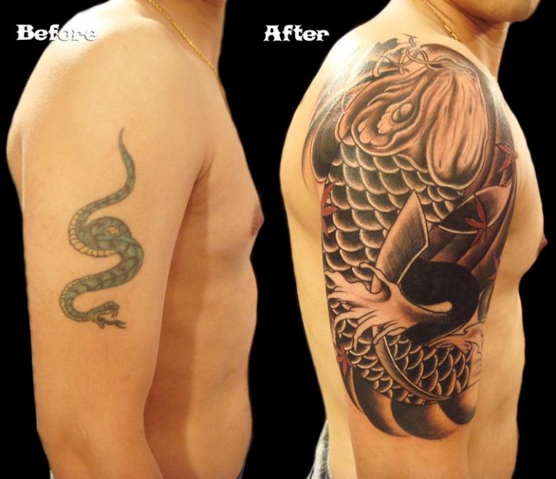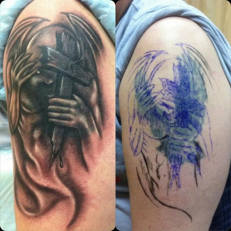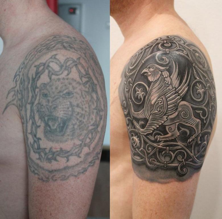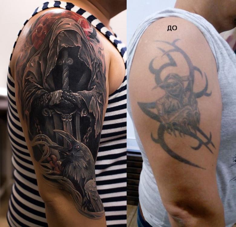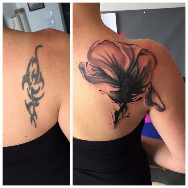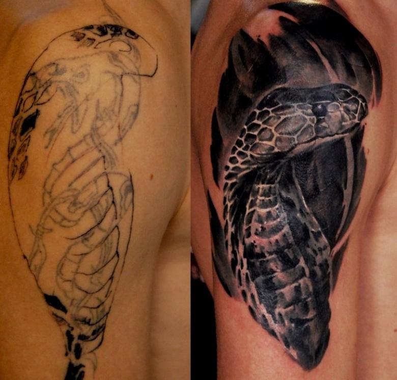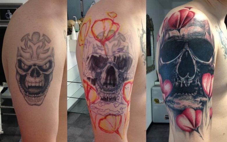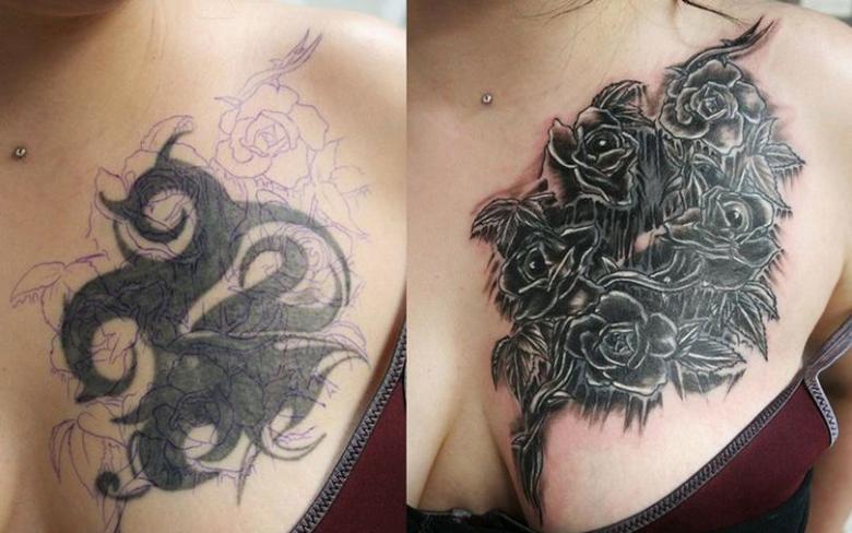 Toutes les photos et cicatrices ne peuvent pas être superposées avec succès. Une pochette en couleur, par exemple, est très difficile à masquer avec une nouvelle couche de peinture. Il reste donc l'option de l'amélioration, vous pouvez essayer de retravailler ou de rafraîchir un motif existant. Mais si le but est de supprimer un ton noir solide, le succès est peu probable, il ne sera pas remplacé par un pigment plus léger. Il ne reste donc qu'une option : le blanchiment de la peau au laser, la chirurgie plastique.