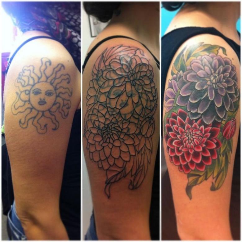 Il convient de prêter une attention particulière aux différentes nuances du tatouage en superposition. Par exemple, les couleurs de la lumière sont-elles brûlées ou pâles ? Les superposer ne sera pas difficile. Même un amateur peut faire le travail. Toutes les teintes peuvent être choisies, l'important étant que la palette soit riche et fraîche par rapport à la version originale.