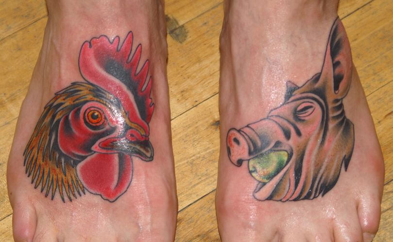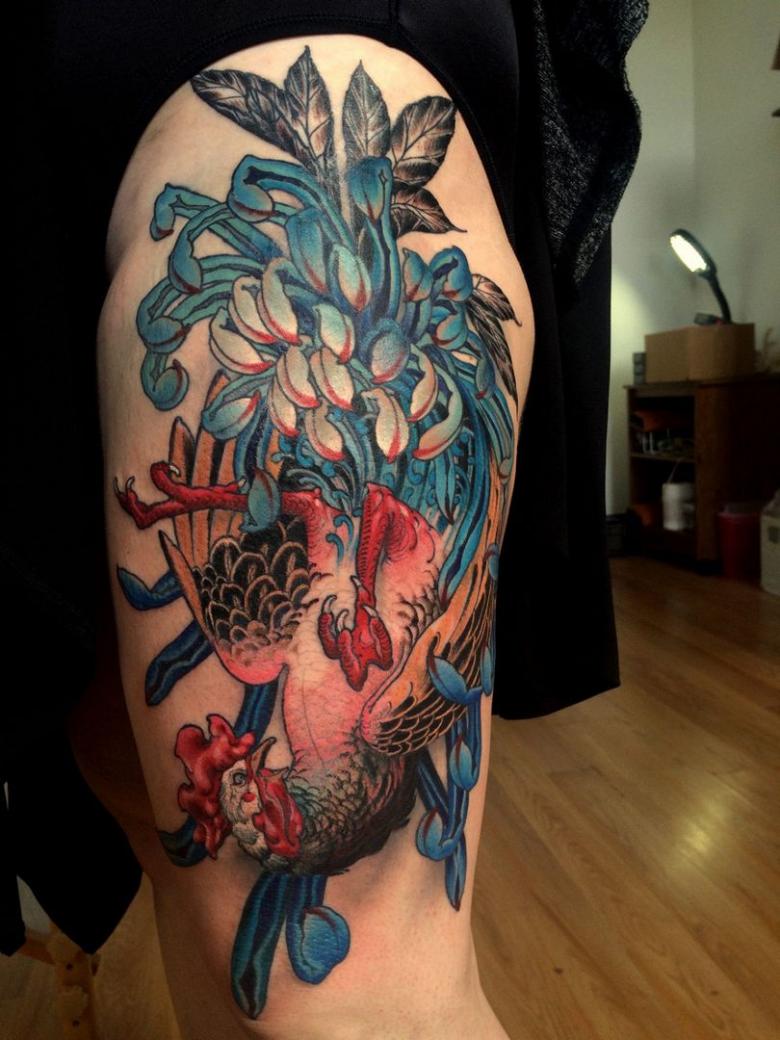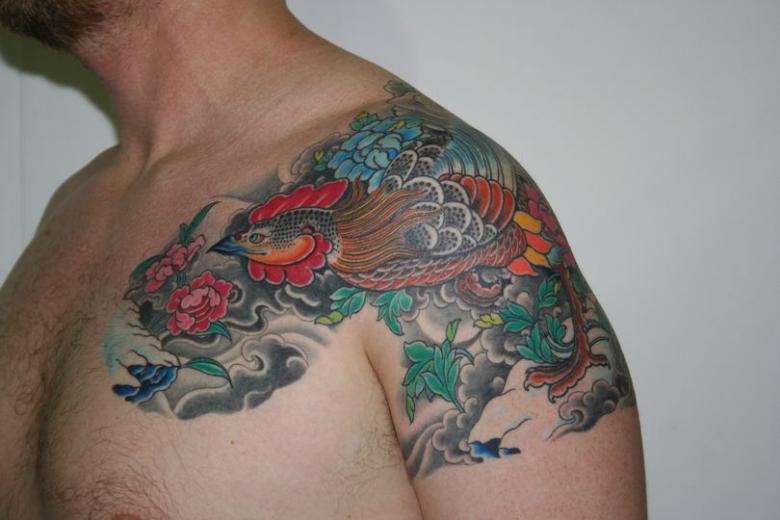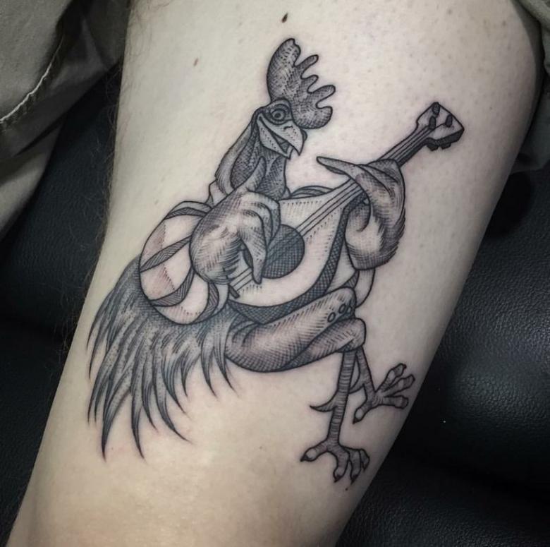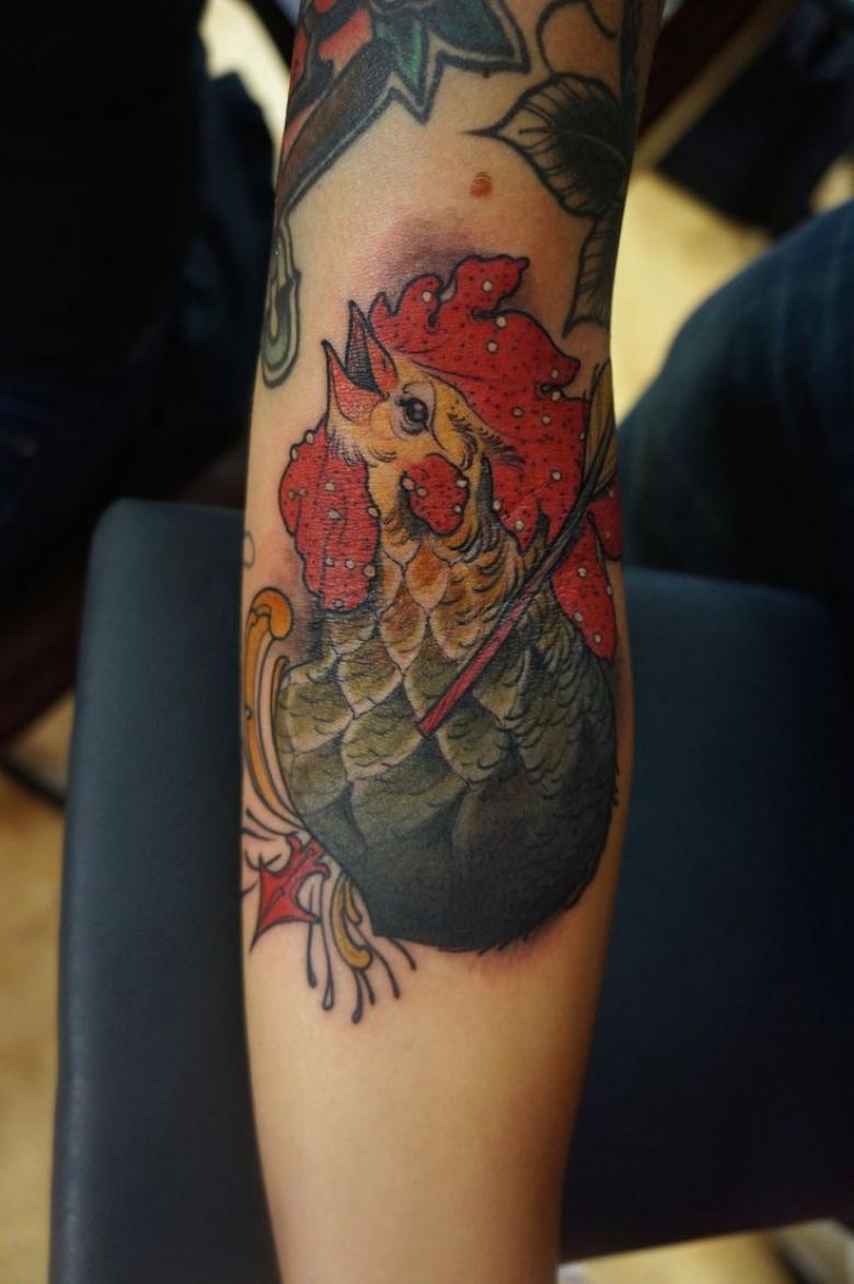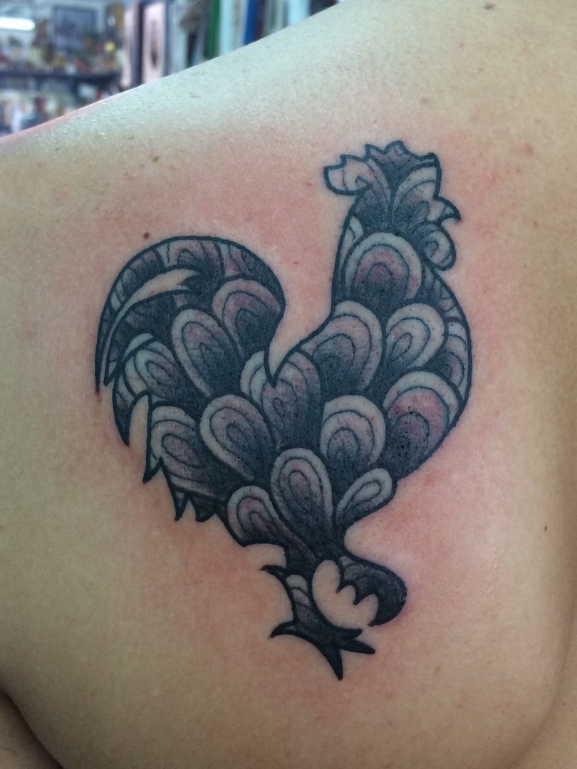 Le coq sur le corps signifie la renaissance - le début d'un jour nouveau, inexploré. Les Chinois considèrent le coq comme un héraut de la chance, de la bonne fortune.