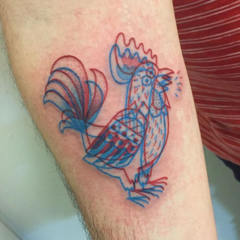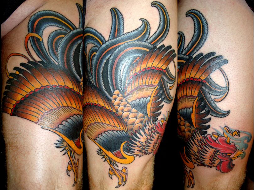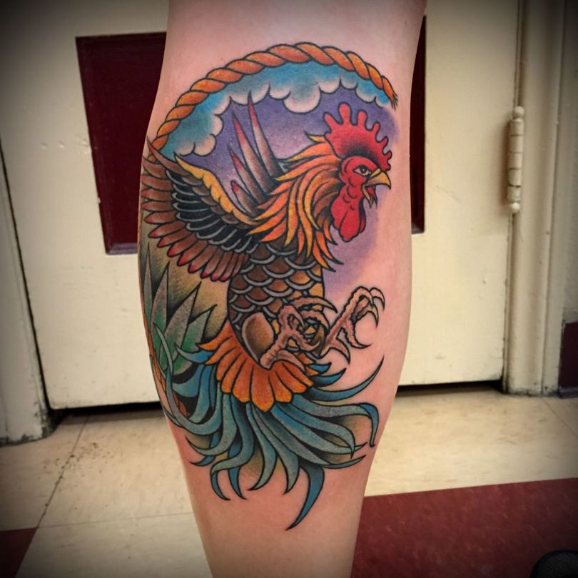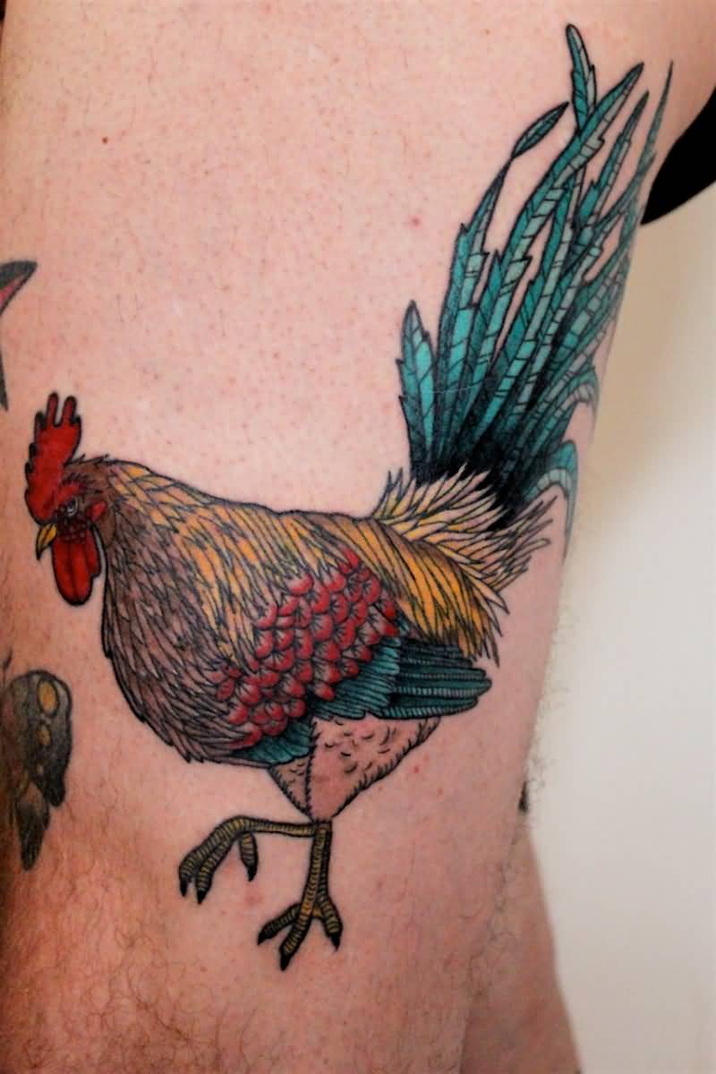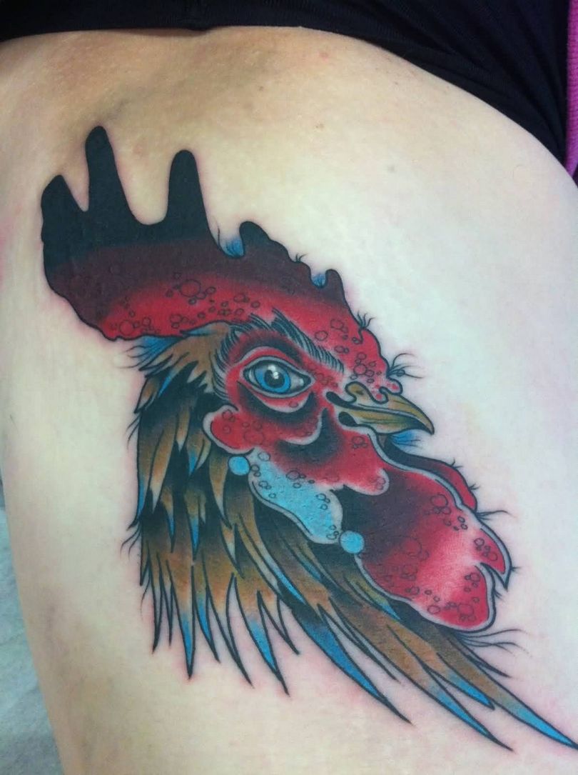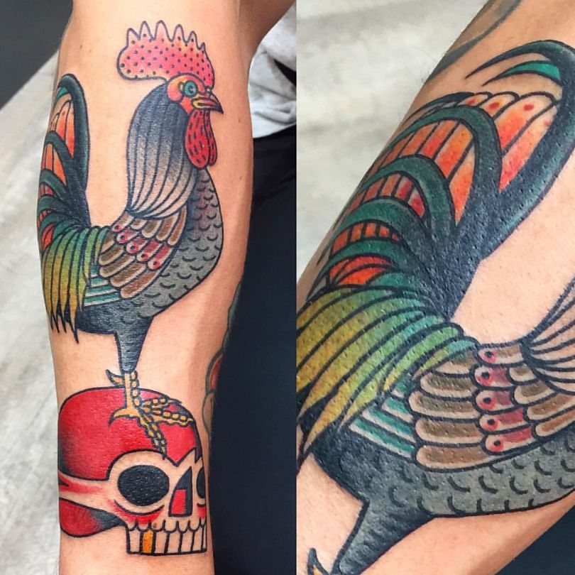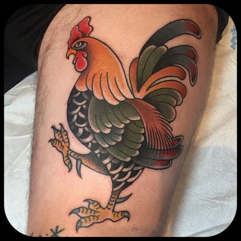 Un coq aux couleurs vives et variées évoque un poseur et un désir de se déguiser et de montrer ses atours. En revanche, un oiseau représenté avec une couleur rouge prédominante protégera son porteur des incendies. En revanche, si la couleur prédominante du tatouage est le blanc, l'homme superstitieux peut se préserver des mauvais esprits et des autres mauvais esprits.