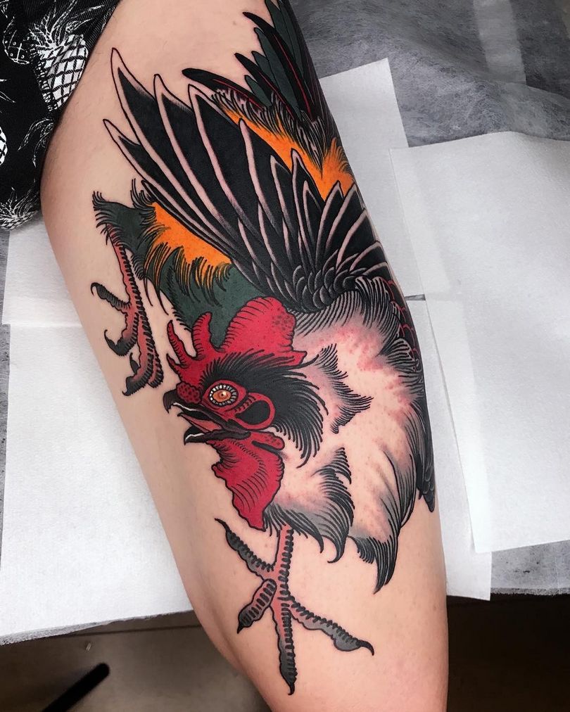 Le tatouage du coq a de nombreuses associations positives et symbolise de bonnes qualités selon le contexte culturel, historique ou national de chacun.