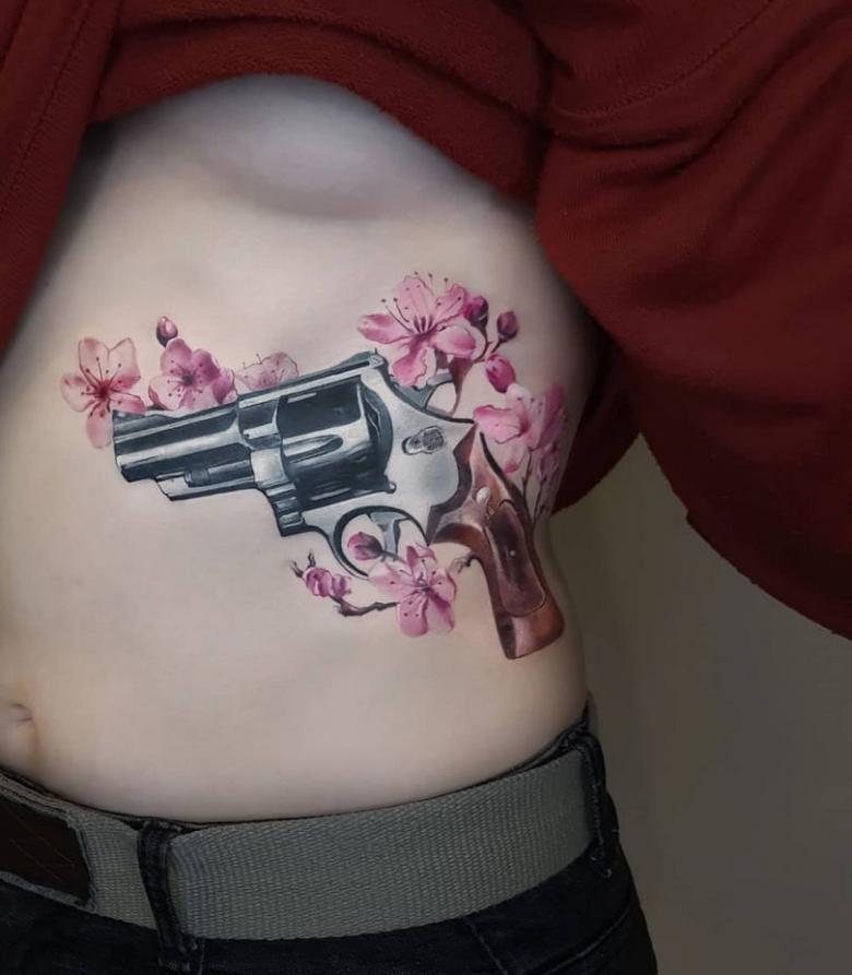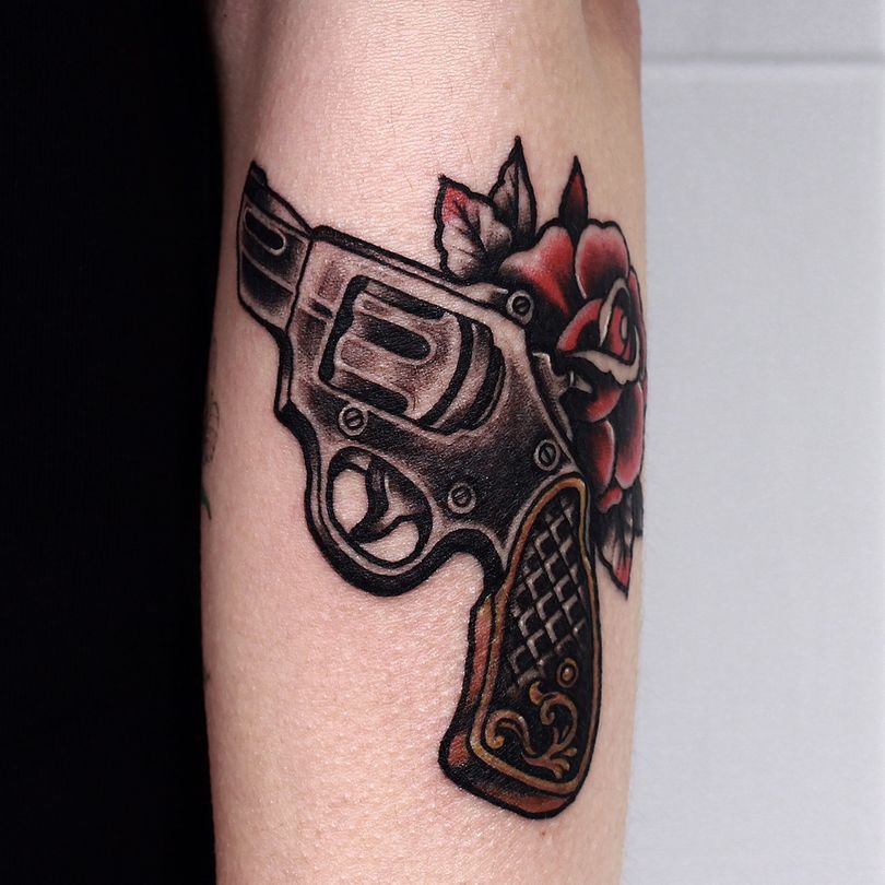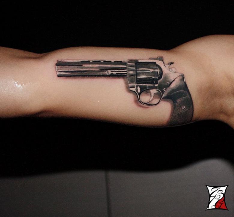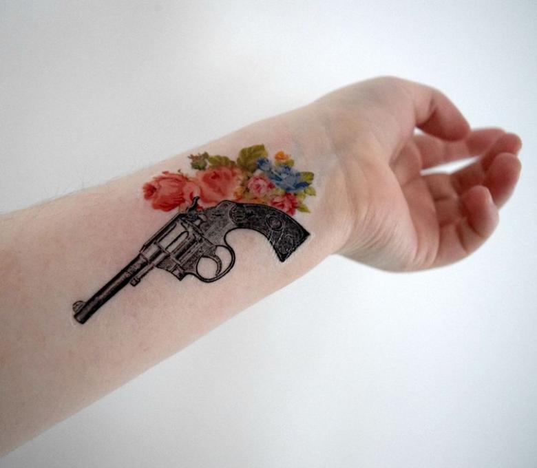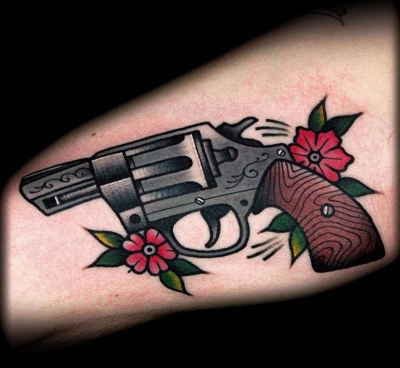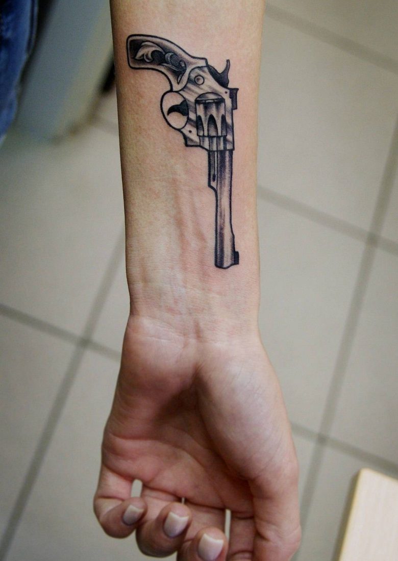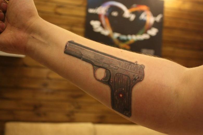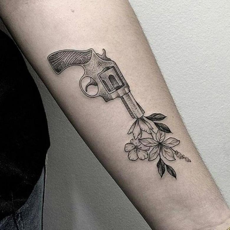 Le pistolet à tatouage jouit d'une grande popularité auprès des hommes et des femmes. Il existe de nombreuses idées d'exécution de la figure. Le sens de l'image, chaque personne y met du sien.
