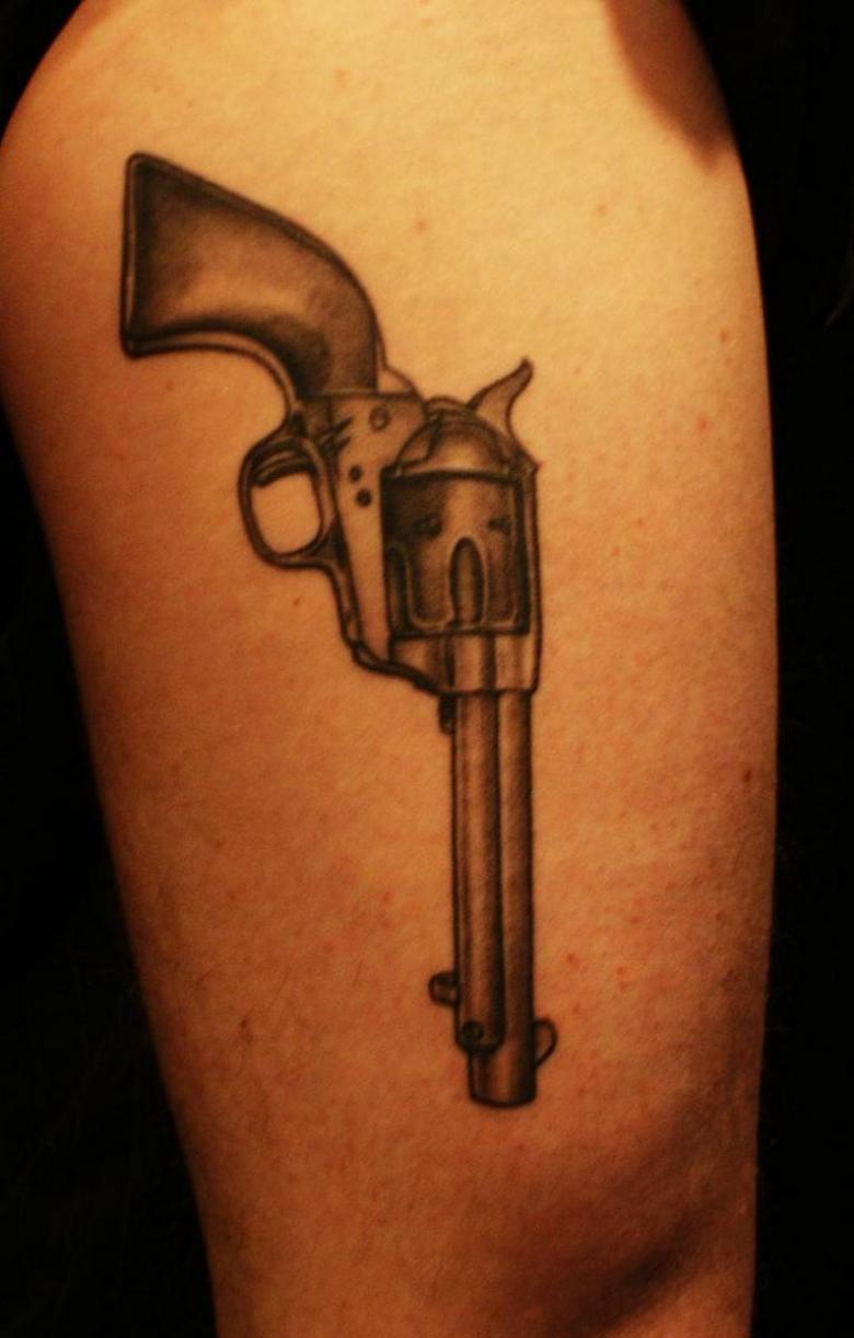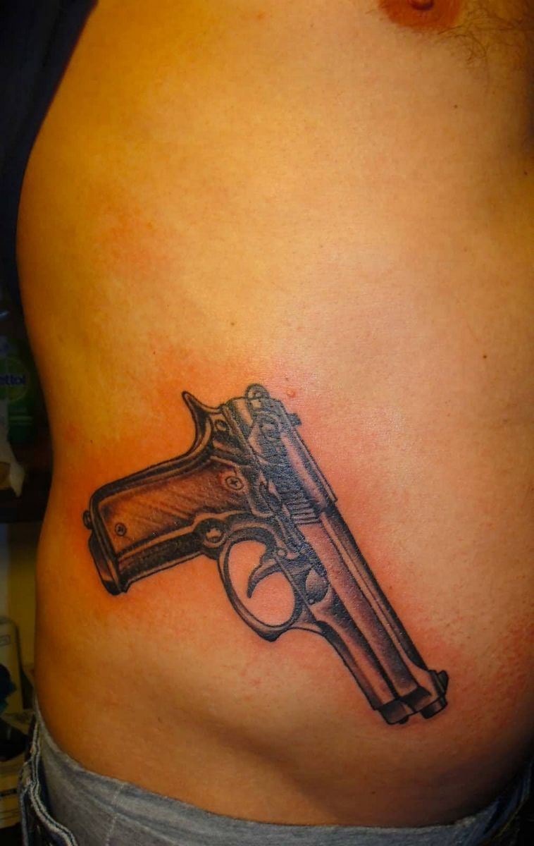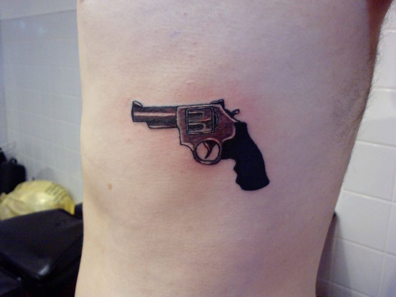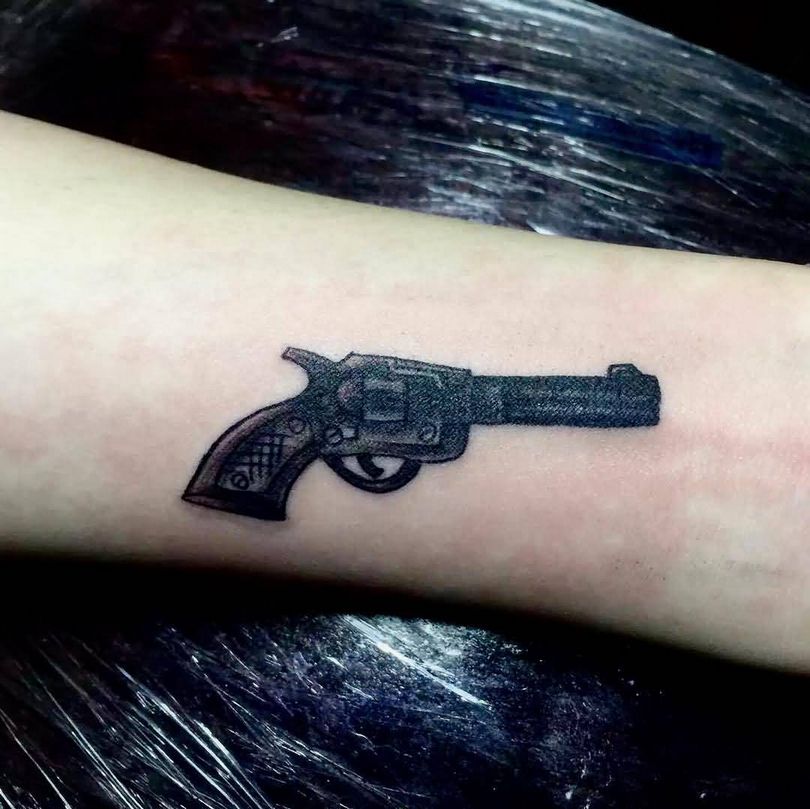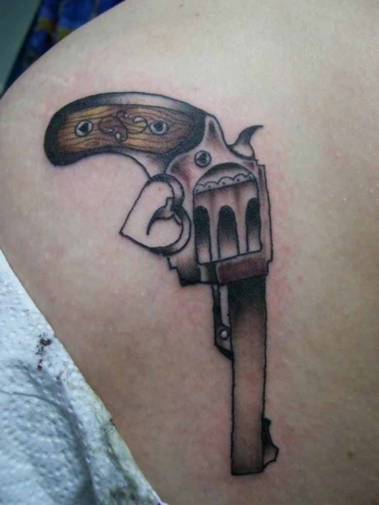 - L'autonomie. Le tatouage d'un pistolet évoque l'autosuffisance et l'autonomie de celui qui le porte. Parfois, une personne peut refuser l'aide nécessaire à son affirmation de soi. La personne réalise tout par elle-même.