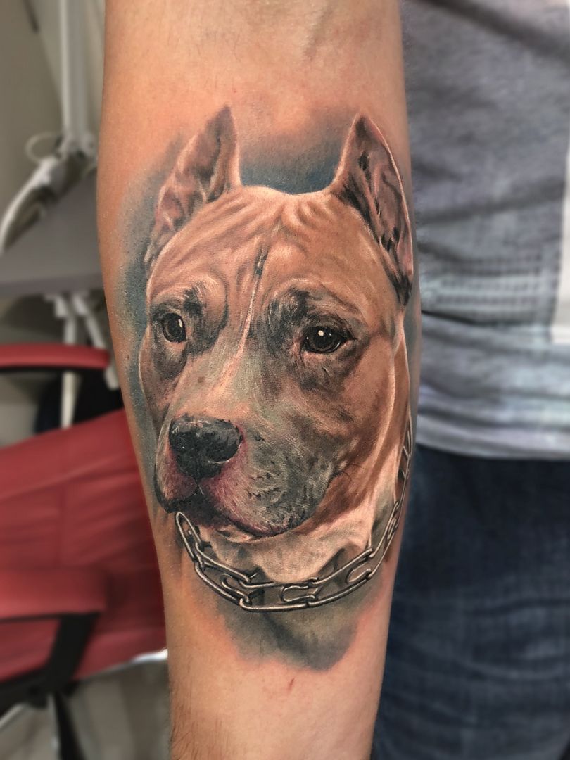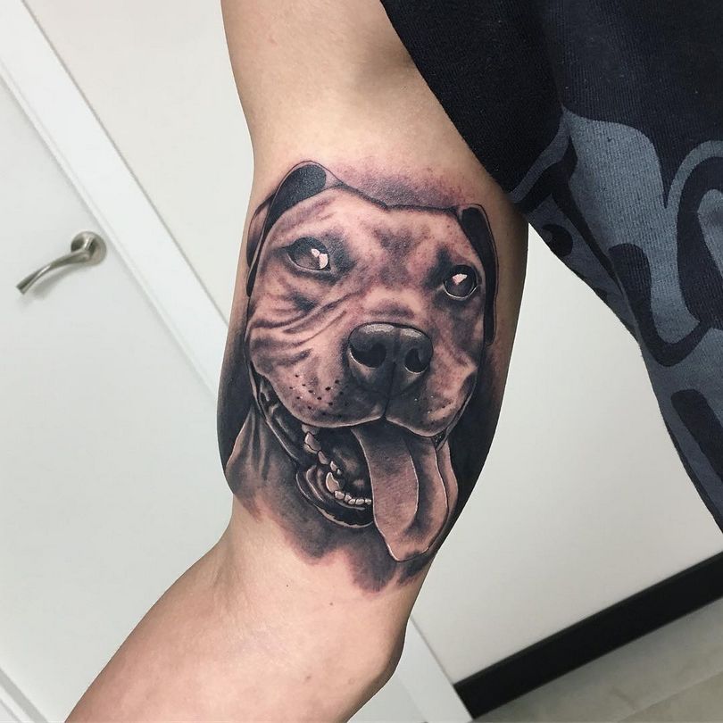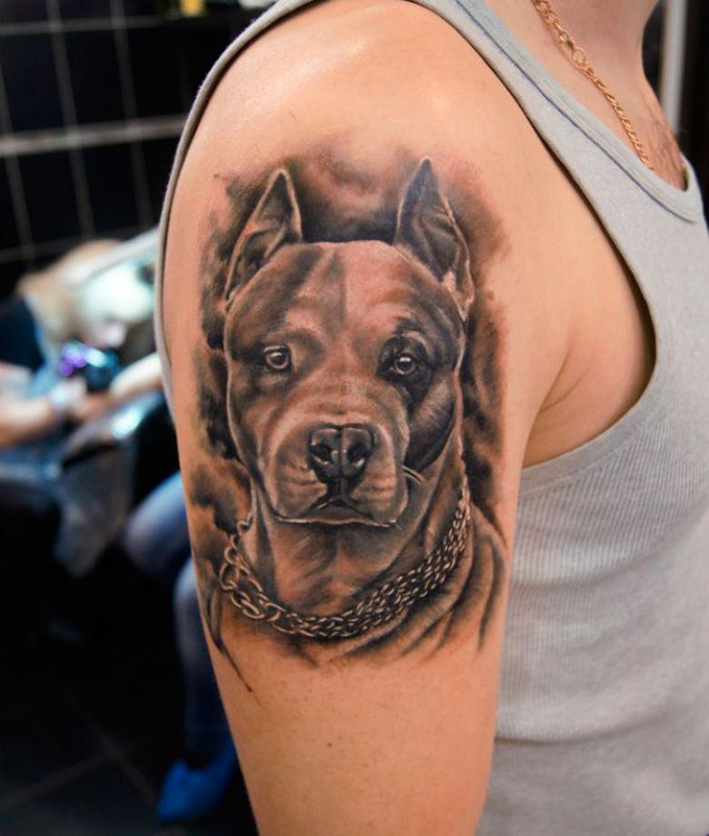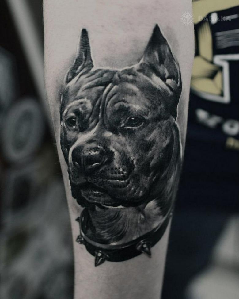 Tattoo pit bull - croquis pour hommes, où marquer (sur le bras, la jambe, le mollet, le cou), photos impressionnantes
