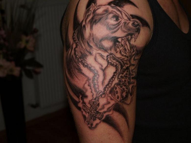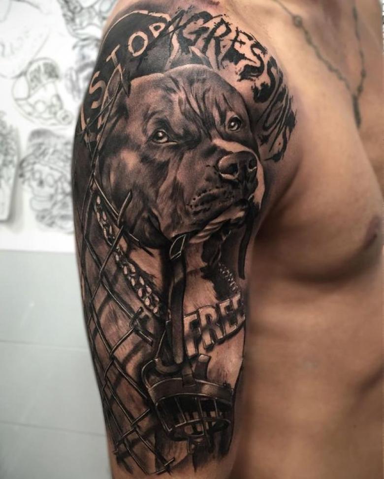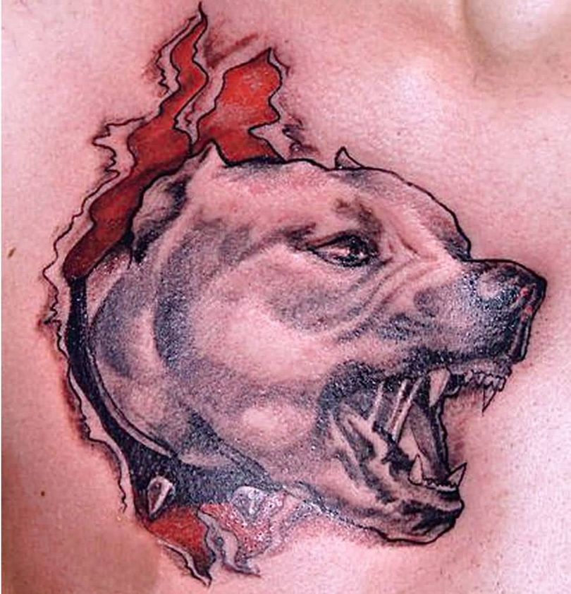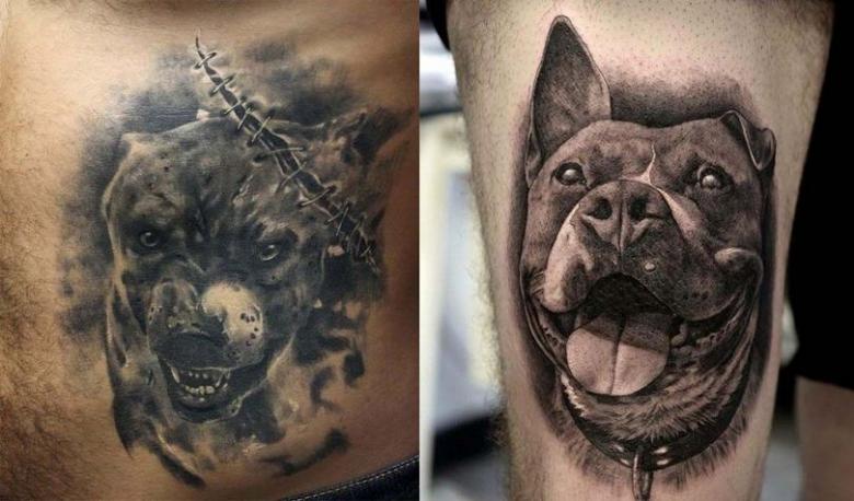 Cela a conduit à l'interdiction de la race dans un certain nombre de pays européens. Et sans surprise, les pitbulls sont devenus le symbole des gangs criminels. Il suffit de regarder les photos de ces chiens pour se rendre compte de leur esprit guerrier. Cependant, même avec cette notoriété dans les studios en Russie et en Amérique, les tatouages avec ces animaux sont populaires. Elles sont surtout appliquées par des hommes, considérant qu'une telle image est une bonne démonstration de la masculinité.