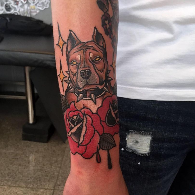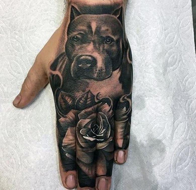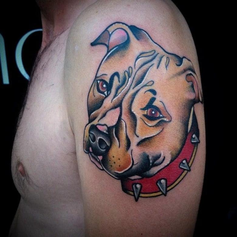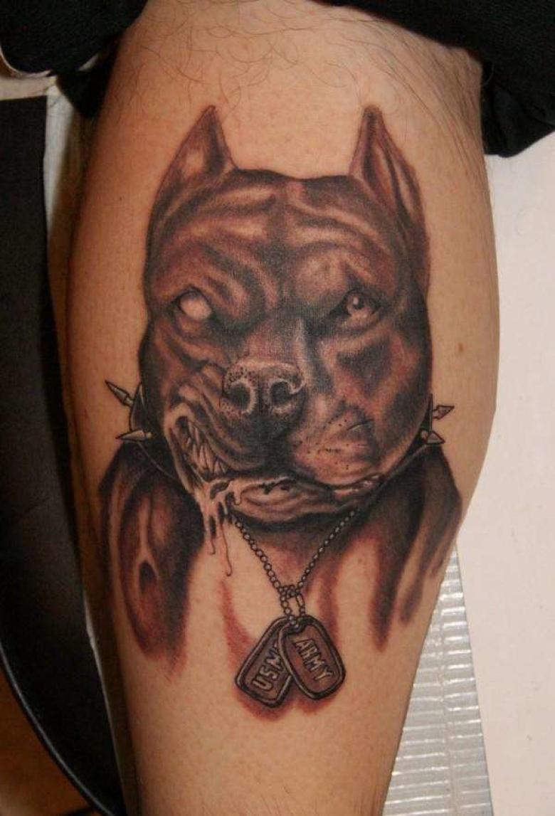 La race pitbull terrier est élevée depuis très longtemps, ces chiens ont donc un faible seuil de douleur. Il n'est pas surprenant que l'animal de combat soit devenu une image de tatouage populaire pour l'armée américaine. Les recrues du 20ème siècle avaient des pitbulls sur leurs badges. Et pendant les grandes guerres, des photos de chiens étaient affichées sur des posters de propagande.