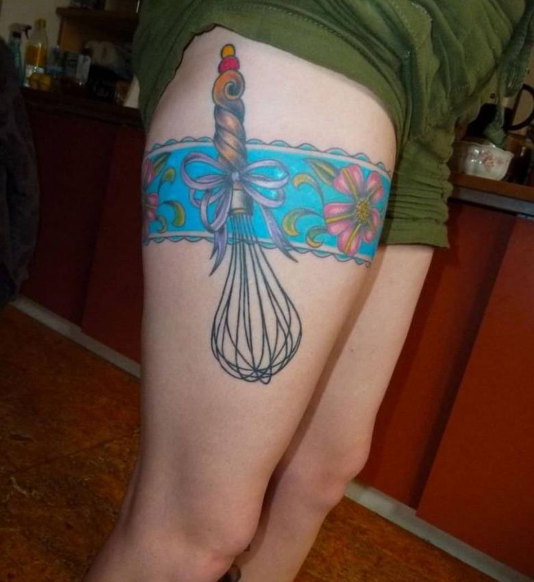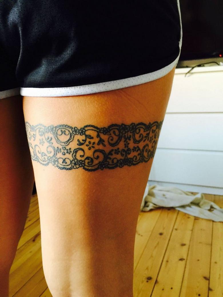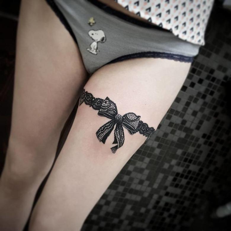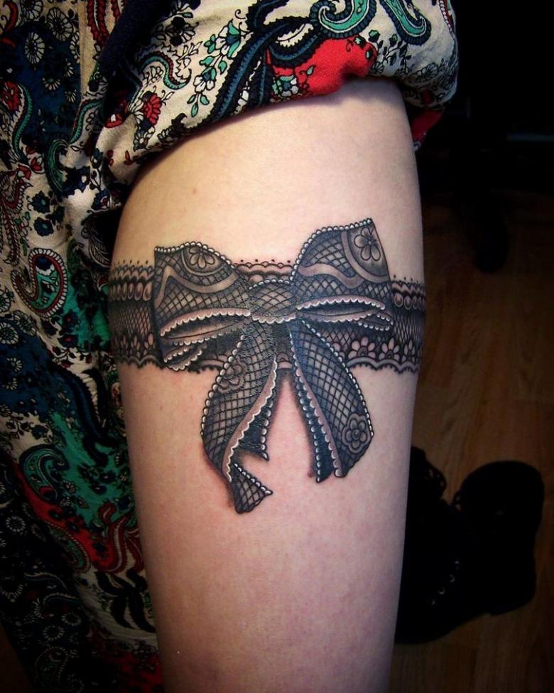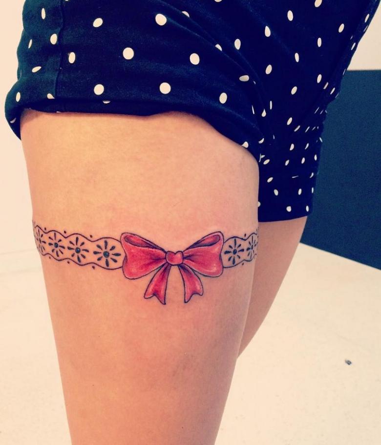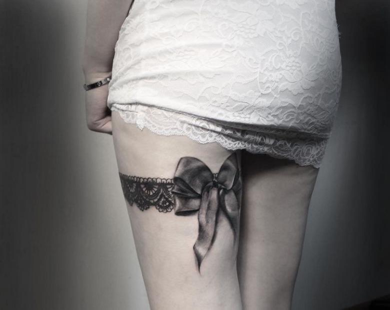Tatouage jarretière - histoire et signification, croquis pour les filles, où placer, photos drôles de travaux.