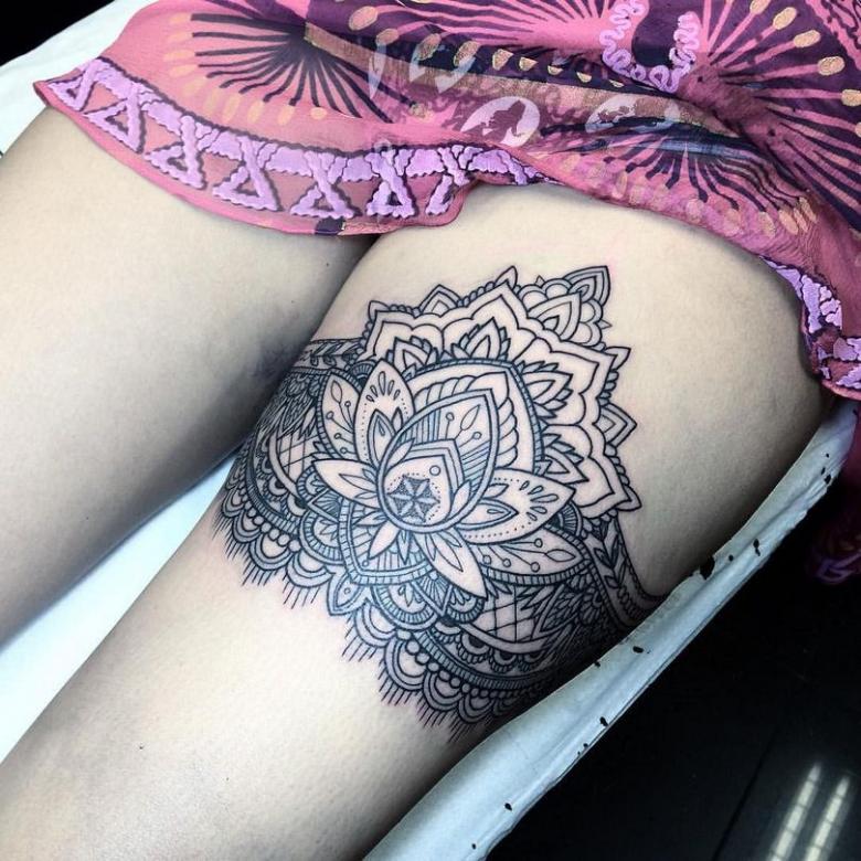 Regardez les photos des travaux finis dans les portfolios des auteurs - parmi eux, vous trouverez certainement une variante avec le tatouage d'une jarretière. Beaucoup de bons maîtres font des tatouages très créatifs sur les jambes, voire se spécialisent dans ce sens.
