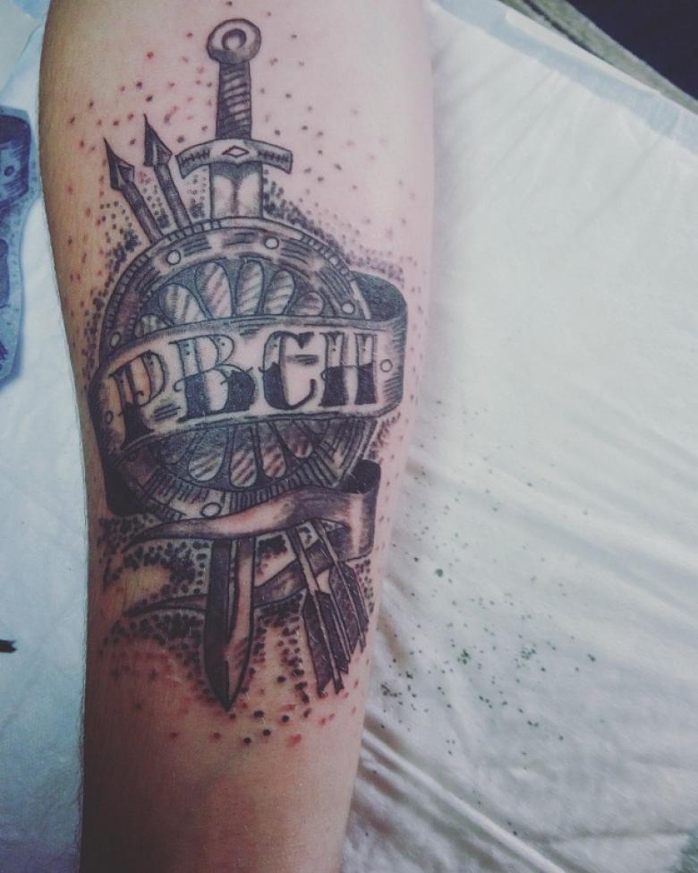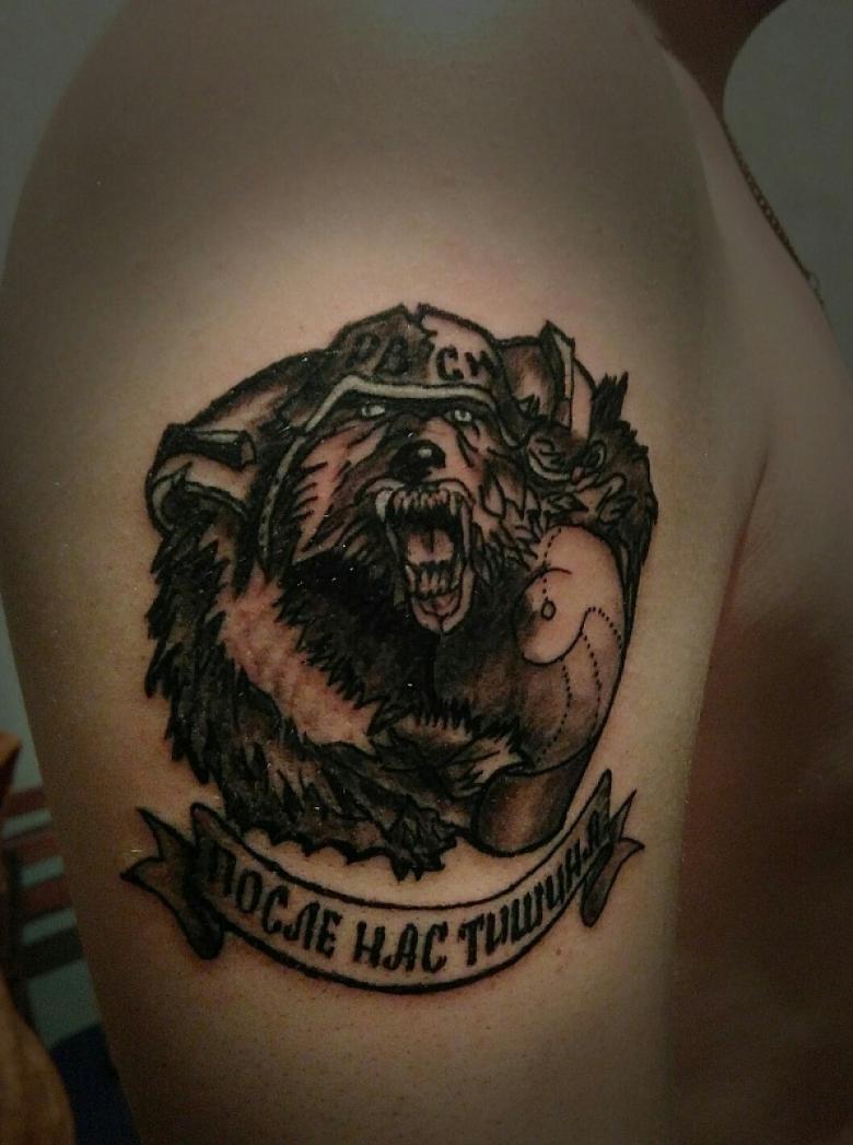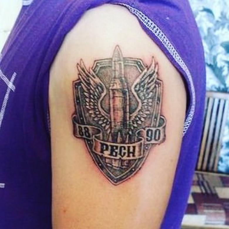 En plus des symboles communs des forces de missiles stratégiques, qui peuvent être utilisés sur les chevrons de l'uniforme militaire, vous pouvez insérer les années de service militaire du soldat, ou son numéro d'unité militaire dans l'esquisse de tatouage.Les jeunes hommes qui vont marquer un tel tatouage militaire doivent se rappeler de ne pas le faire avant la conscription.Le tatouage militaire doit refléter pleinement les caractéristiques individuelles de son propriétaire et dire aux initiés ses étapes de service dans l'armée.