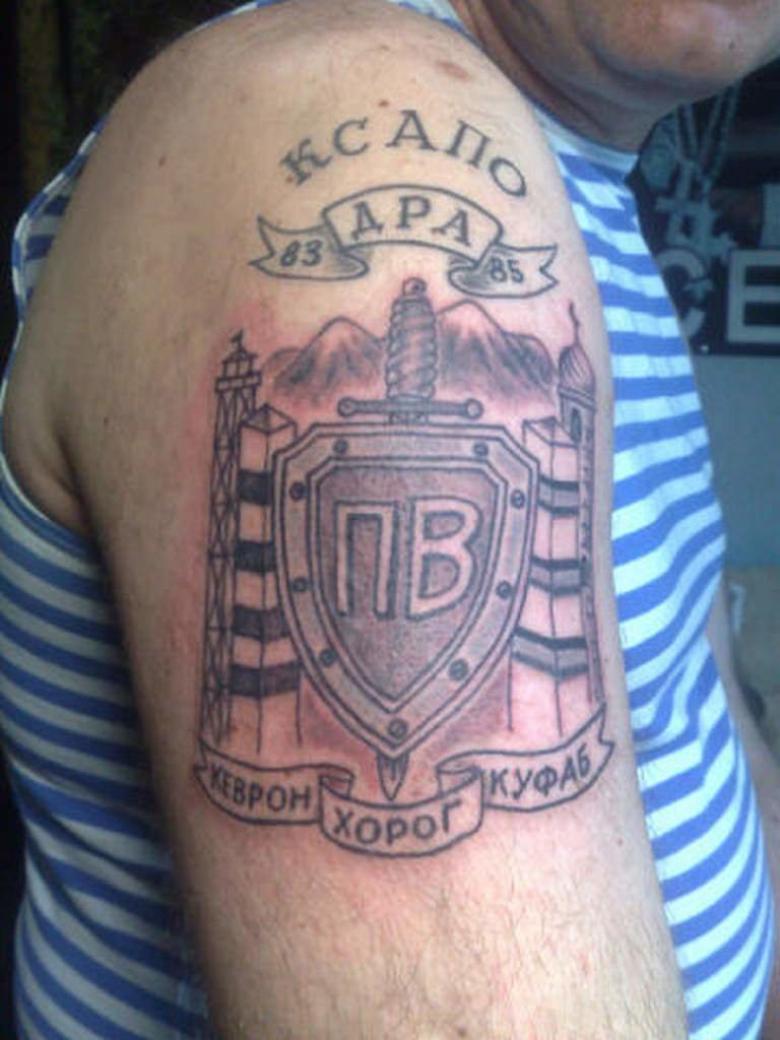 La plupart des tatouages militaires comportent un certain nombre d'éléments importants, qui se reflètent dans les chevrons des uniformes militaires, notamment l'abréviation des forces armées, dont le déchiffrage est clair pour les connaisseurs. En plus de cela, le croquis du tatouage militaire peut contenir :