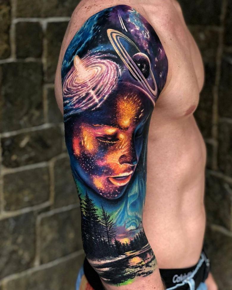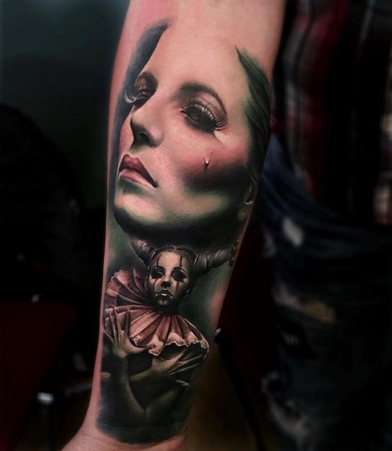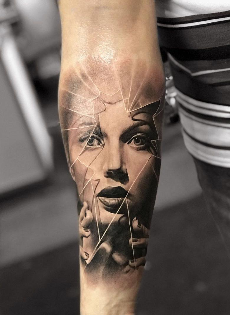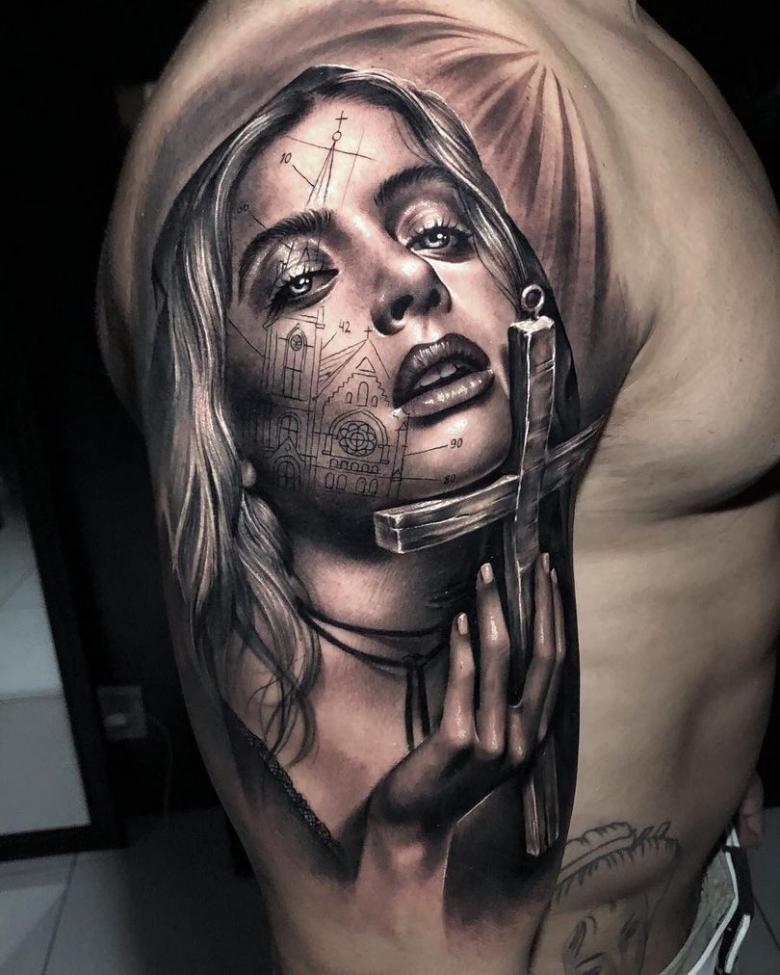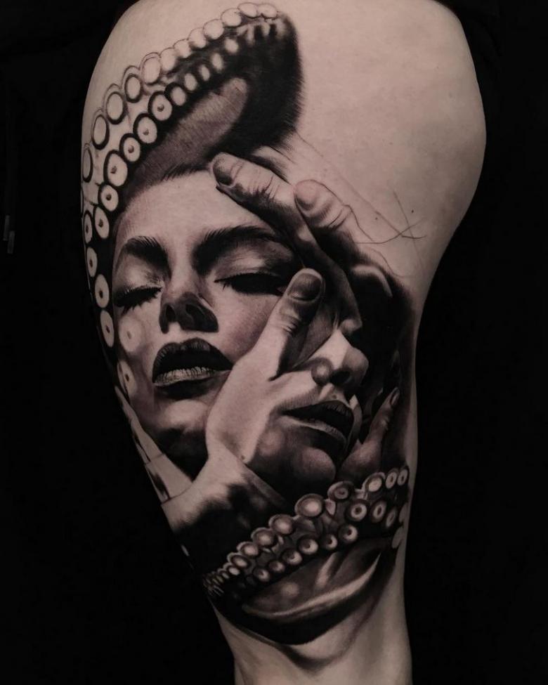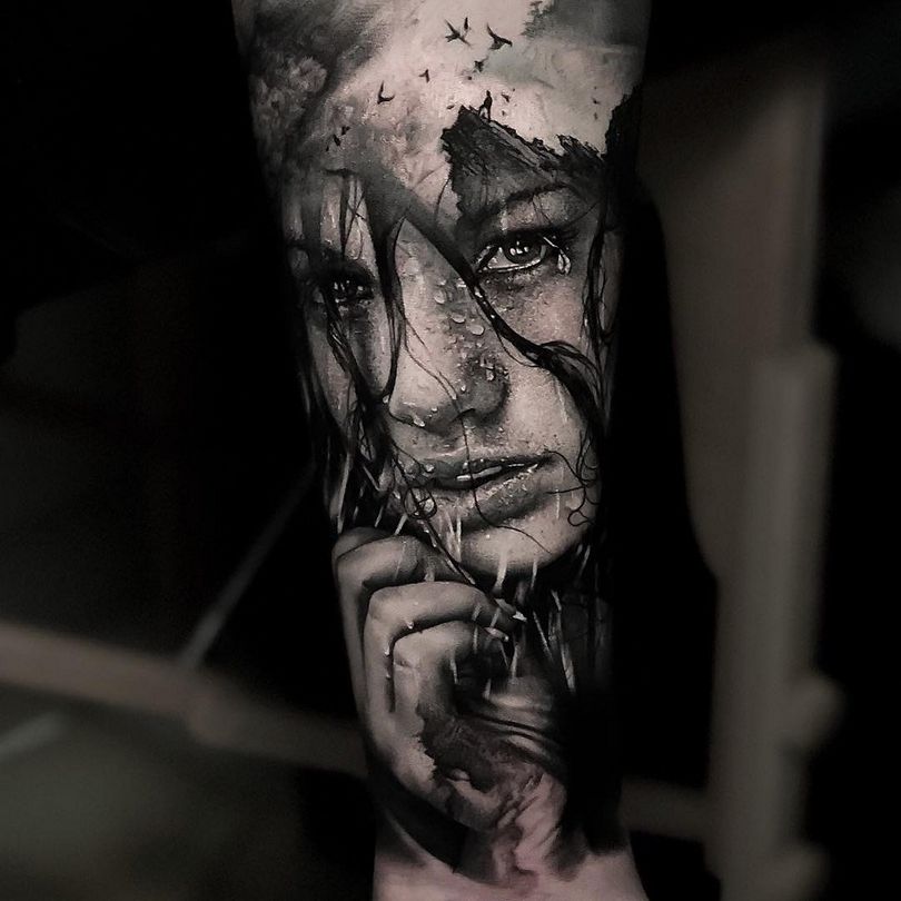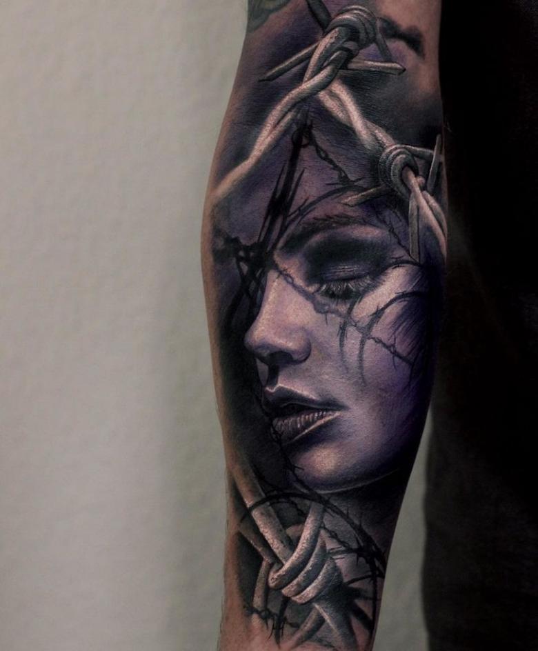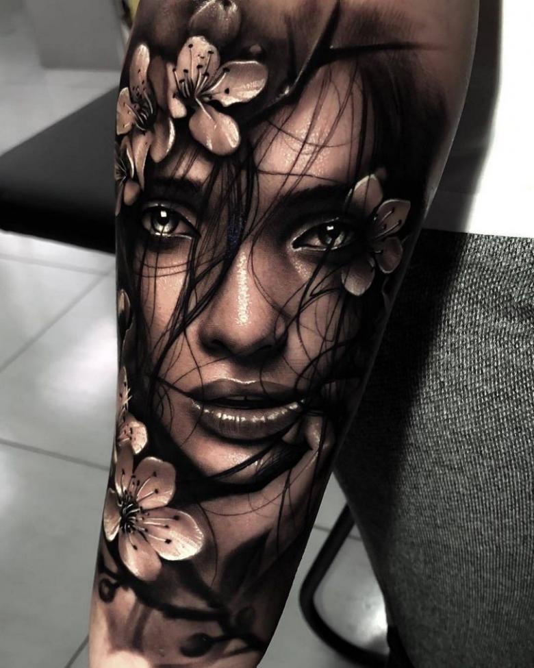 Tatouage dans le style du réalisme : croquis d'hommes et de femmes, lieu d'application (sur le bras, l'épaule, l'avant-bras, comme la manche), idées de photos