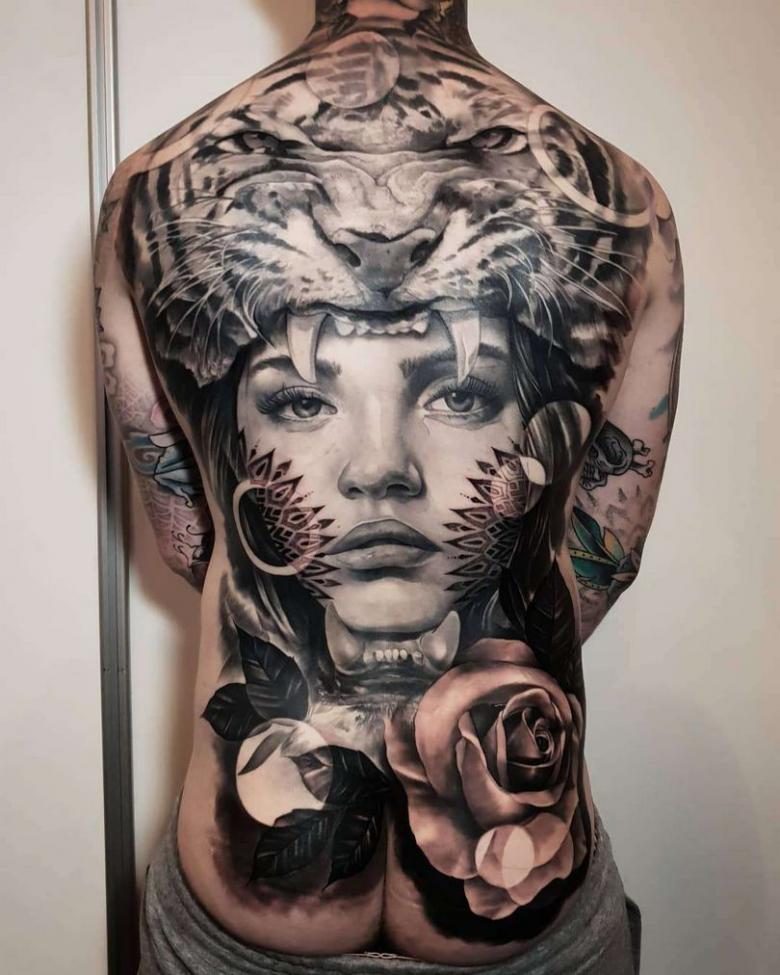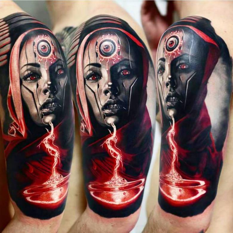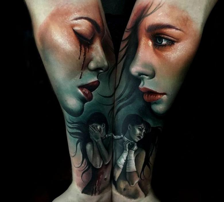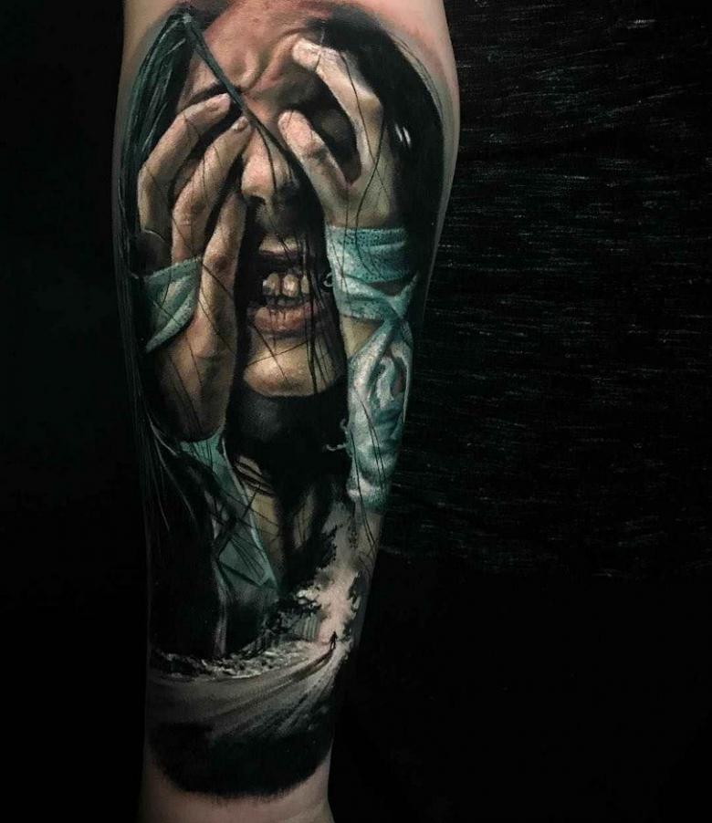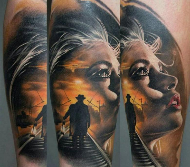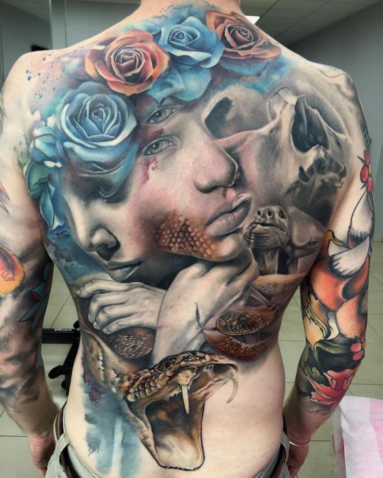 Ce n'est que dans ce style que l'œuvre peut avoir une image très inhabituelle et raconter une histoire, car le motif incarnera pleinement l'environnement. De véritables professionnels, utilisant la peau de l'homme au lieu d'une toile, ont pu obtenir des résultats inégalés. Aujourd'hui, il est très difficile de distinguer une photographie ou une image du tatouage, qui est réalisé dans le style du réalisme.