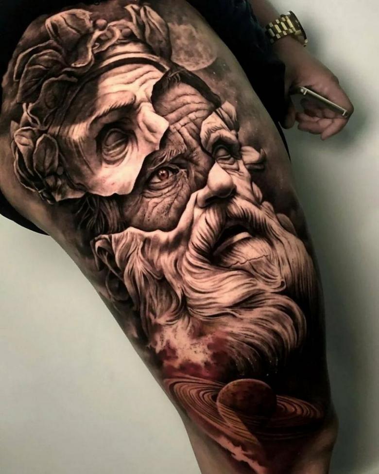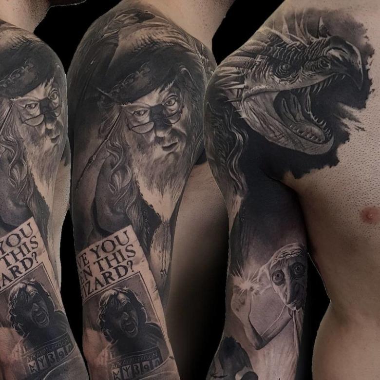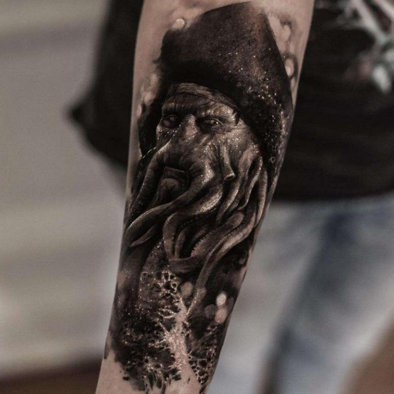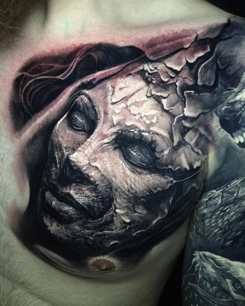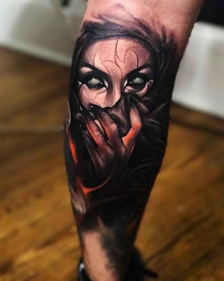 Ce n'est que dans ce style que l'œuvre peut avoir une image très inhabituelle et raconter une histoire, car le motif incarnera pleinement l'environnement. De véritables professionnels, utilisant la peau de l'homme au lieu d'une toile, ont pu obtenir des résultats inégalés. Aujourd'hui, il est très difficile de distinguer une photographie ou une image du tatouage, qui est réalisé dans le style du réalisme.