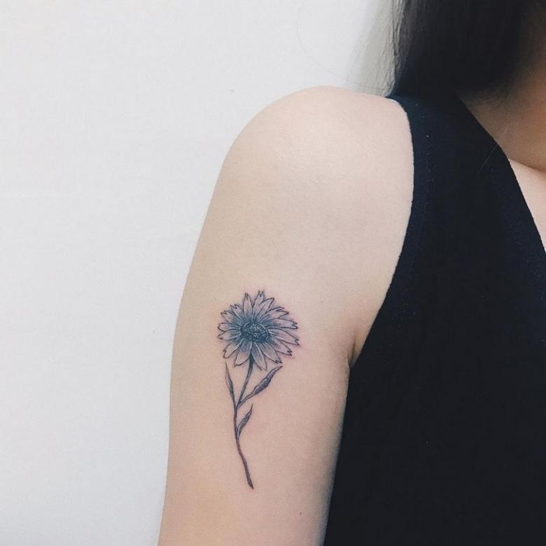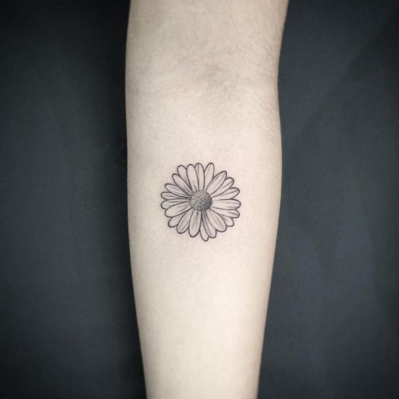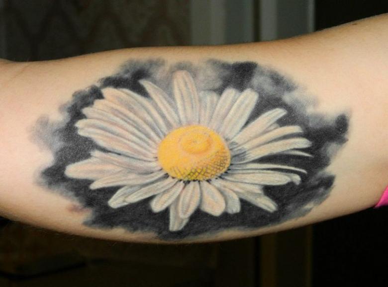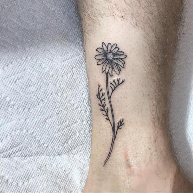 Bien sûr, le tatouage de la marguerite se retrouve principalement chez les femmes, car le sexe masculin n'a pas la particularité de choisir des fleurs sans défense comme tatouage. Hotot dans notre temps inhabituel est toujours possible exceptions.