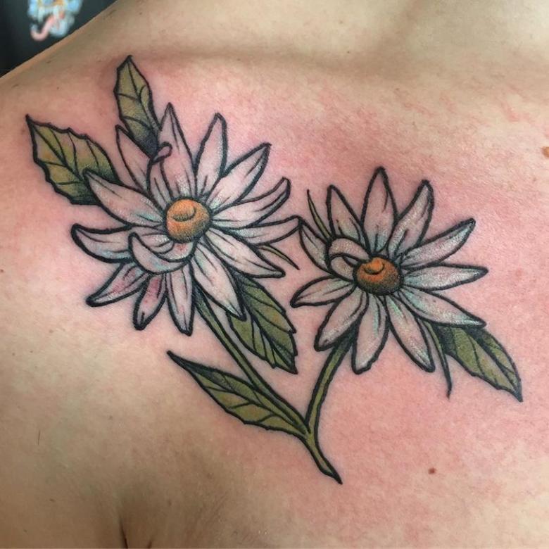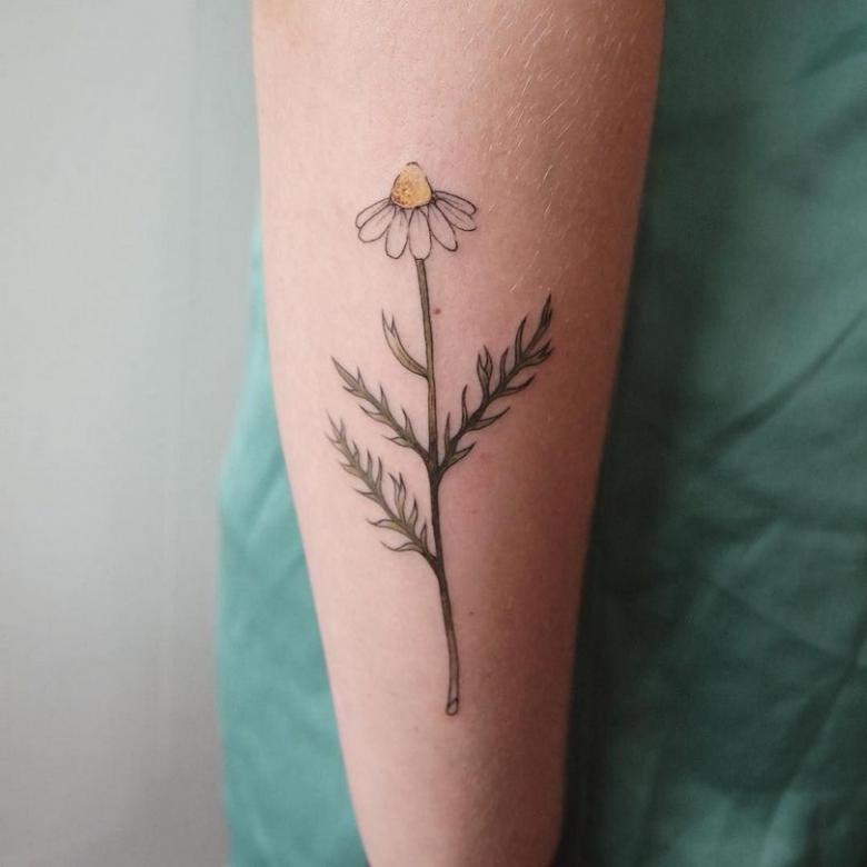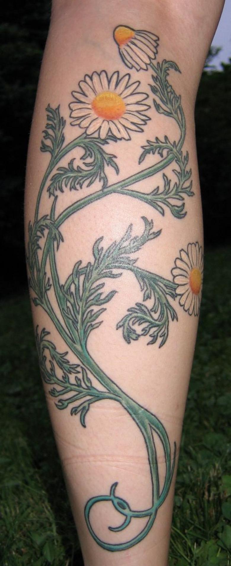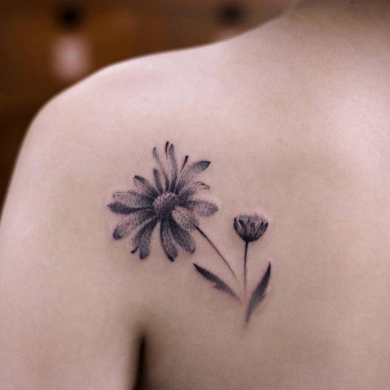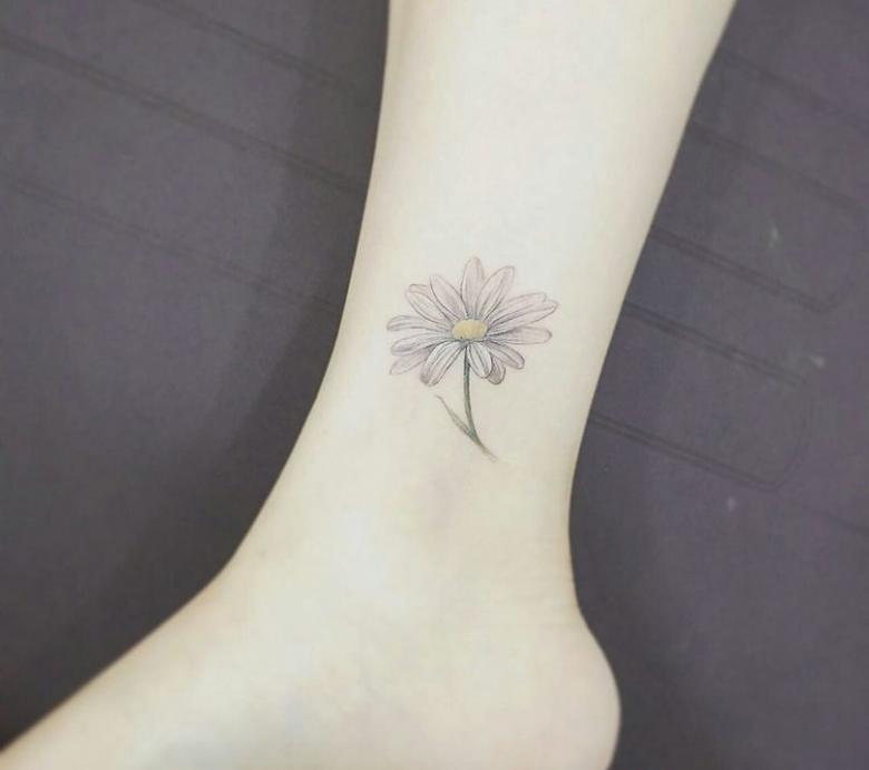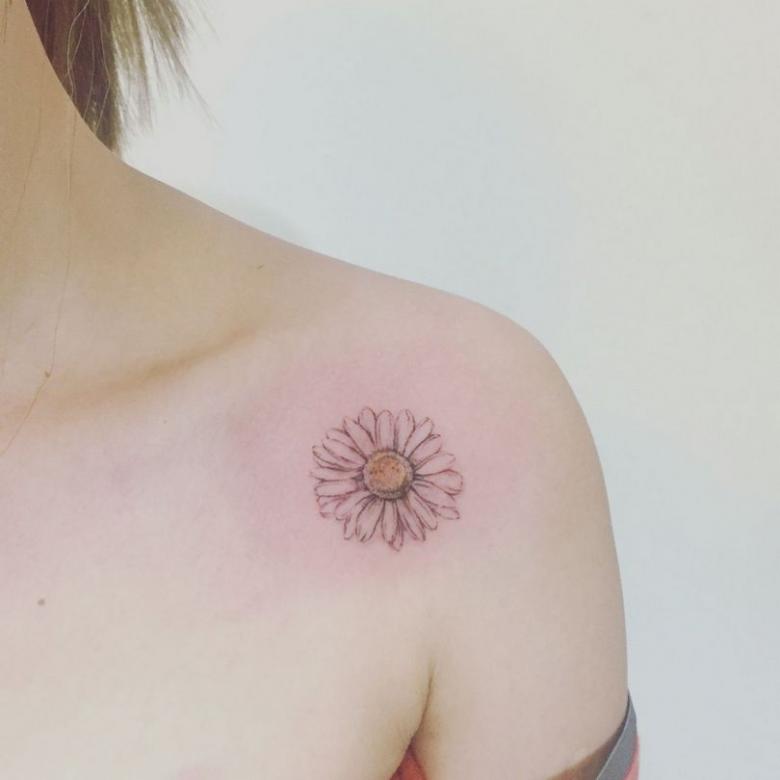 Les marguerites tatouées étaient très populaires dans l'ancienne Union soviétique. Dans les pays occidentaux et en Asie, les fleurs ne font presque pas attention. Probablement parce que la marguerite pousse davantage dans la bande centrale de la Russie. Mais la patrie de la fleur est l'Amérique.