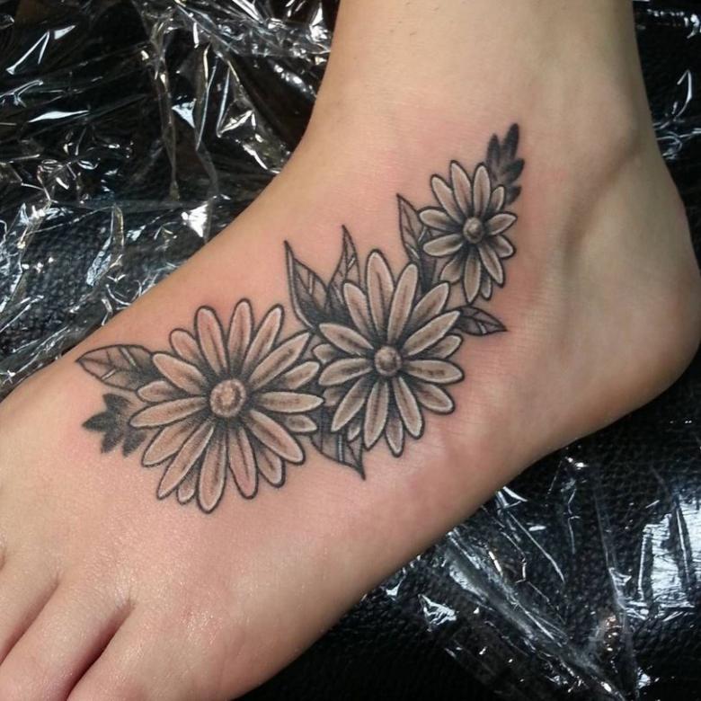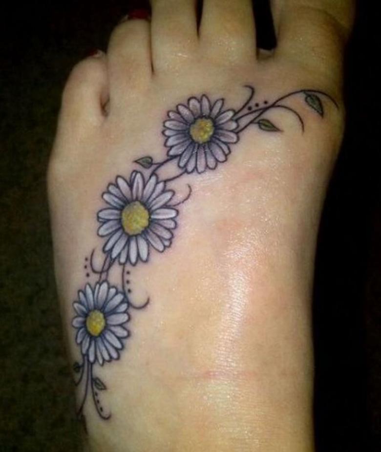 Tatouage de marguerites - signification, croquis, emplacement de l'application sur le poignet, la main, la clavicule, le pied.