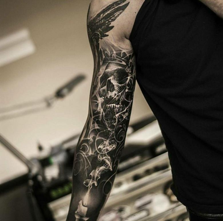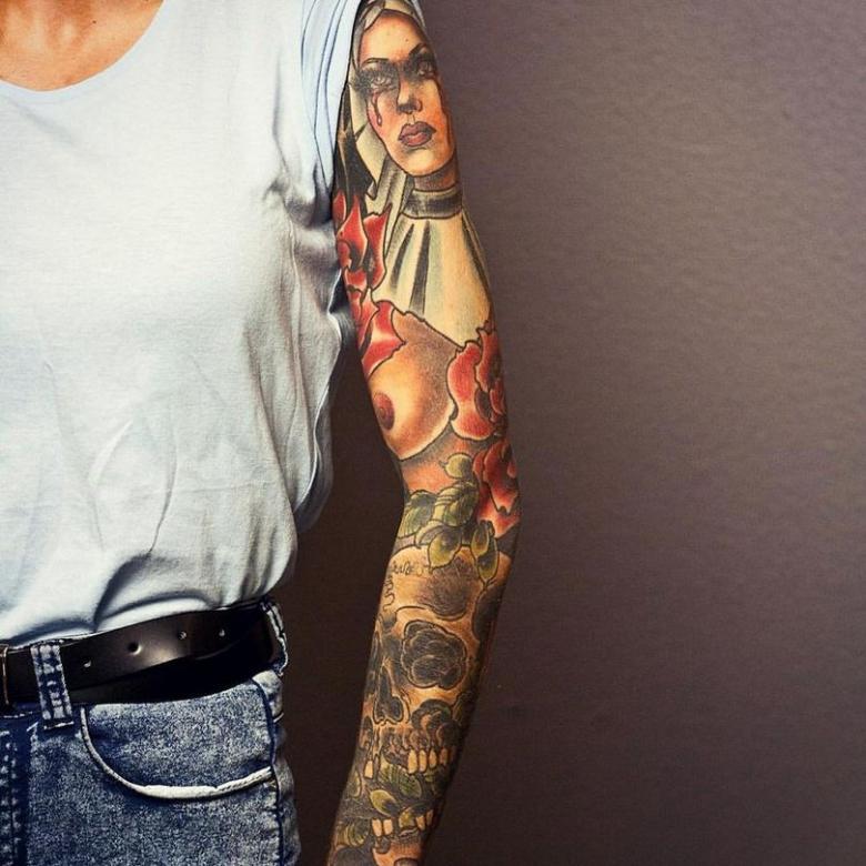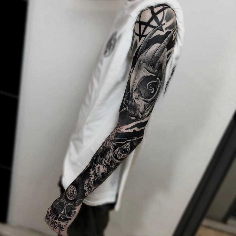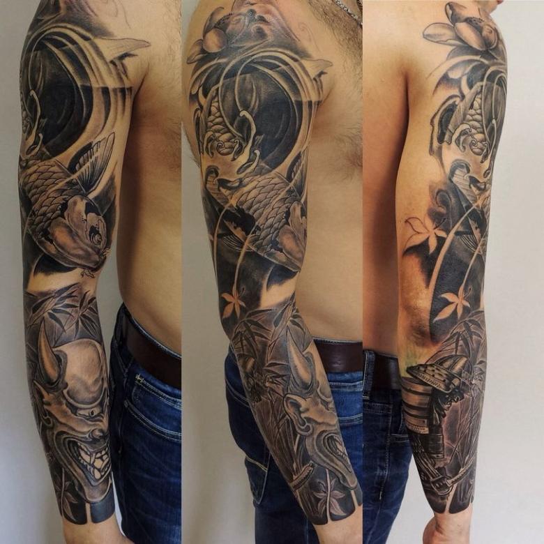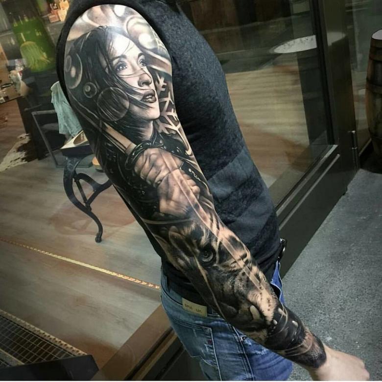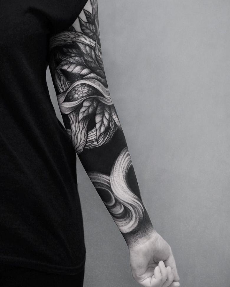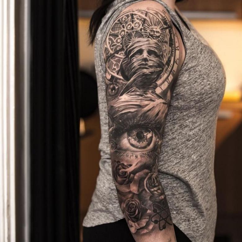 Manches de tatouage - styles, couleurs (noir, noir et blanc, manches de couleur), photos impressionnantes