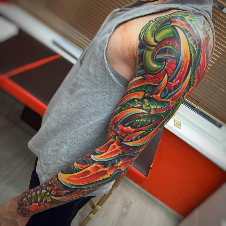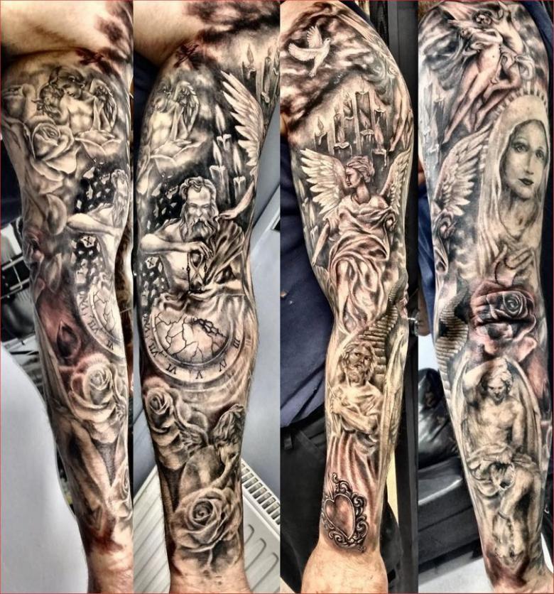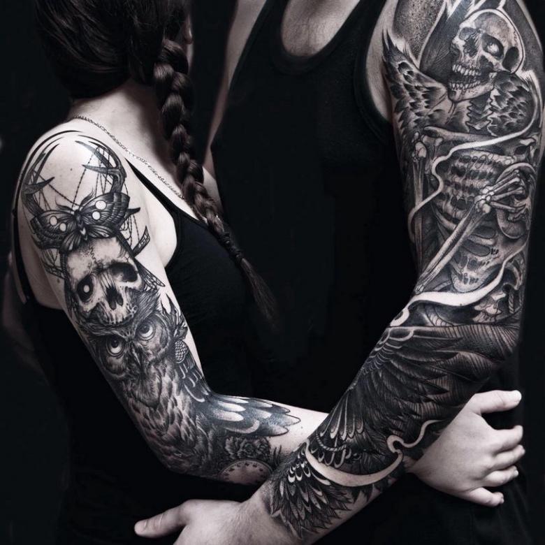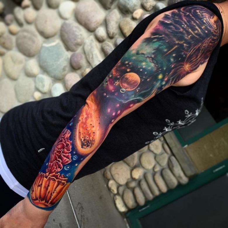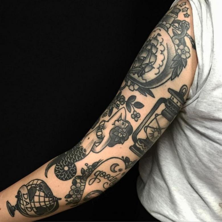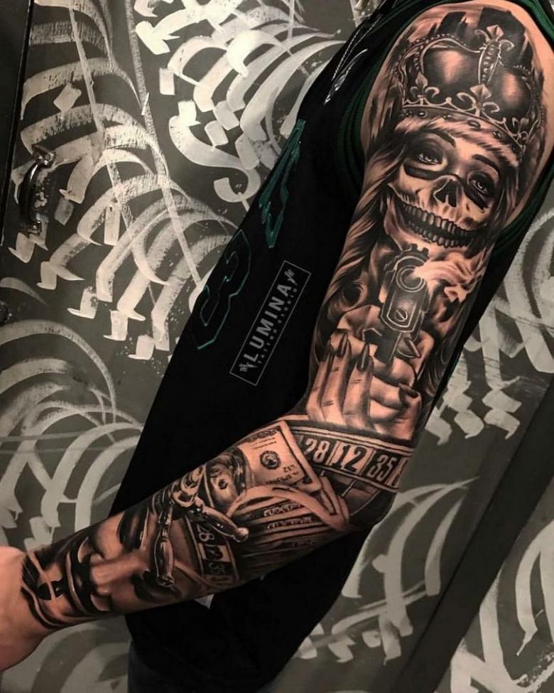 Manches de tatouage - styles, couleurs (noir, noir et blanc, manches de couleur), photos impressionnantes