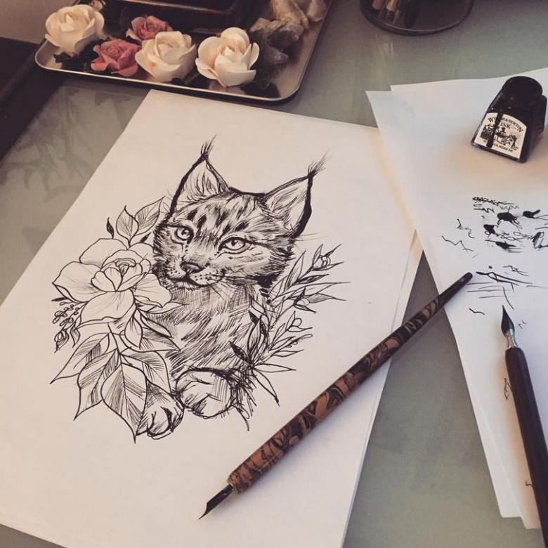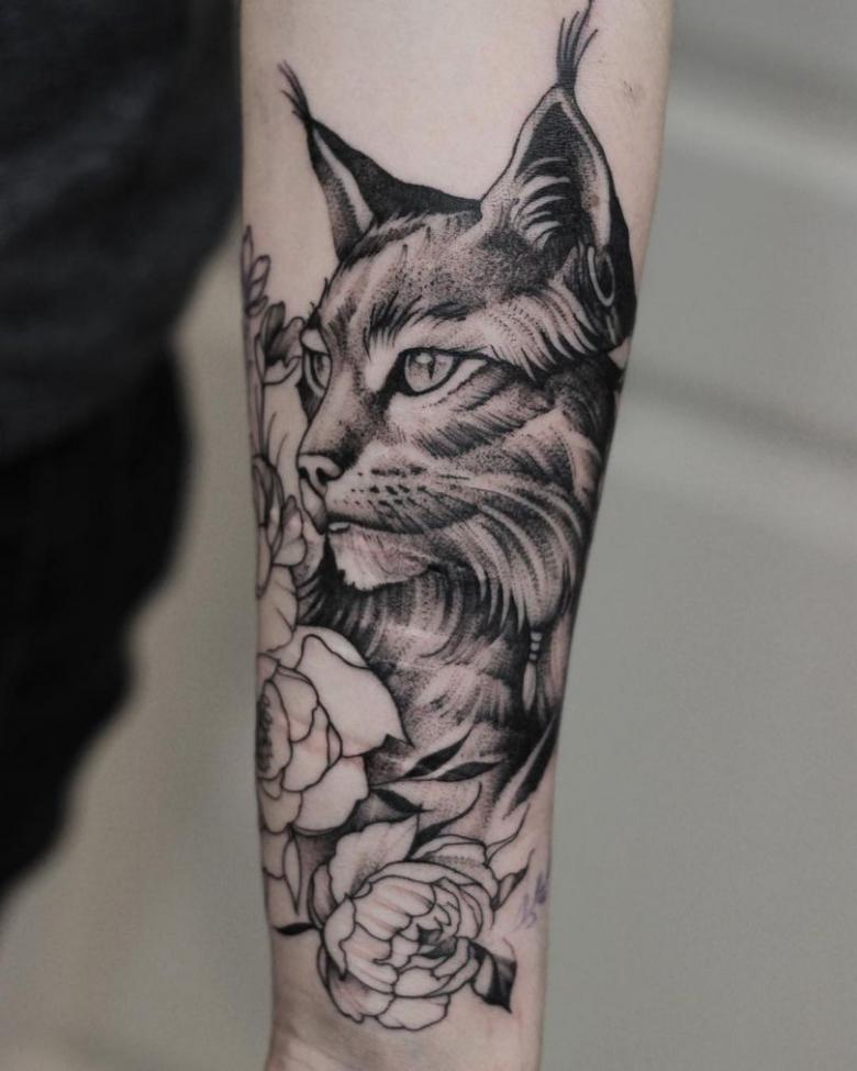 Le lynx n'est pas souvent le sujet de tatouages, cependant, les gens aiment l'image de ce prédateur possédant de charmantes houppes complétant ses longues oreilles. Le chat est attiré par son apparence attrayante, mais il ne faut pas oublier qu'il est un dangereux prédateur. Son regard plein d'âme, et sa capacité à survivre dans les conditions difficiles de la terre sibérienne, forcent le respect.