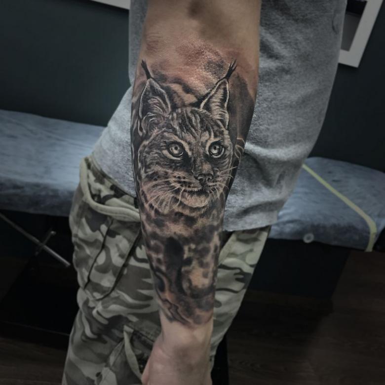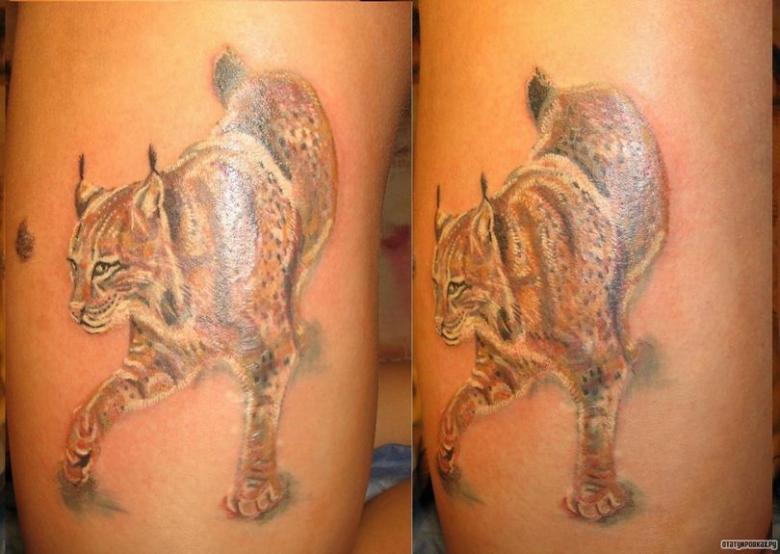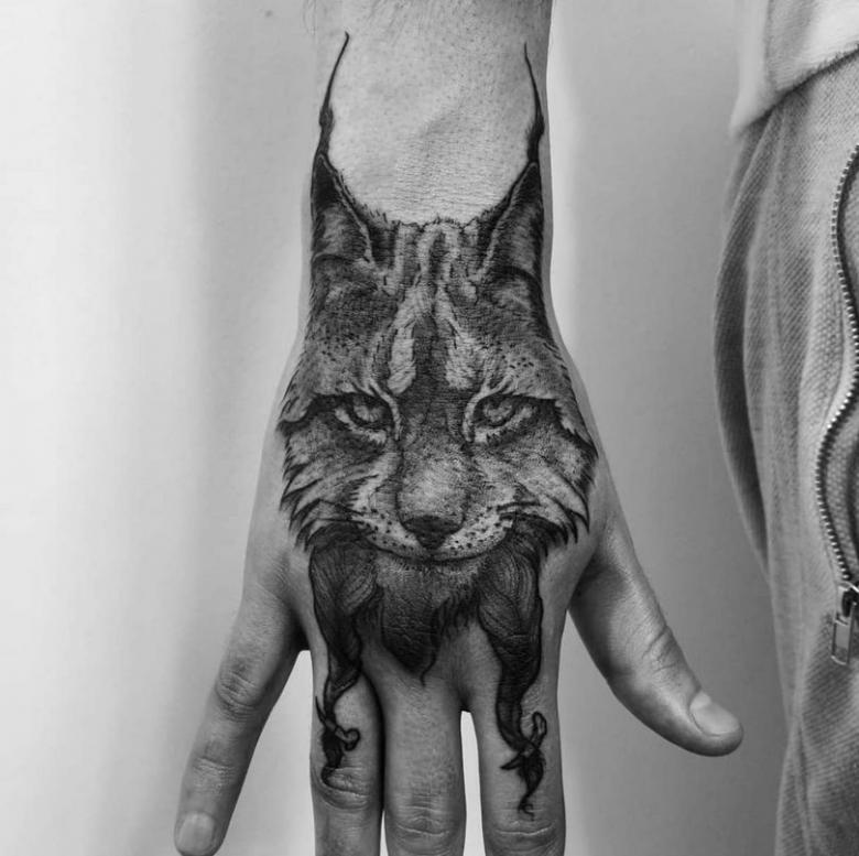 Le plus souvent, le tatouage de lynx est appliqué sur la main, cependant, il y a des cas où cela n'est pas possible parce qu'il y a trop peu d'espace. Dans ce cas, une autre partie du corps est utilisée. Tout dépend de l'objectif du tatouage - le propriétaire veut le cacher ou créer un endroit proéminent. La place principale est la hanche, car le lynx symbolisera l'infatigabilité, la rapidité et la force de son propriétaire.
