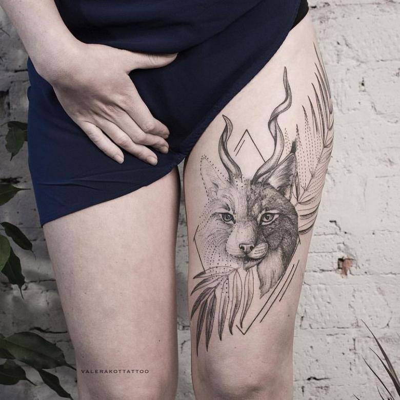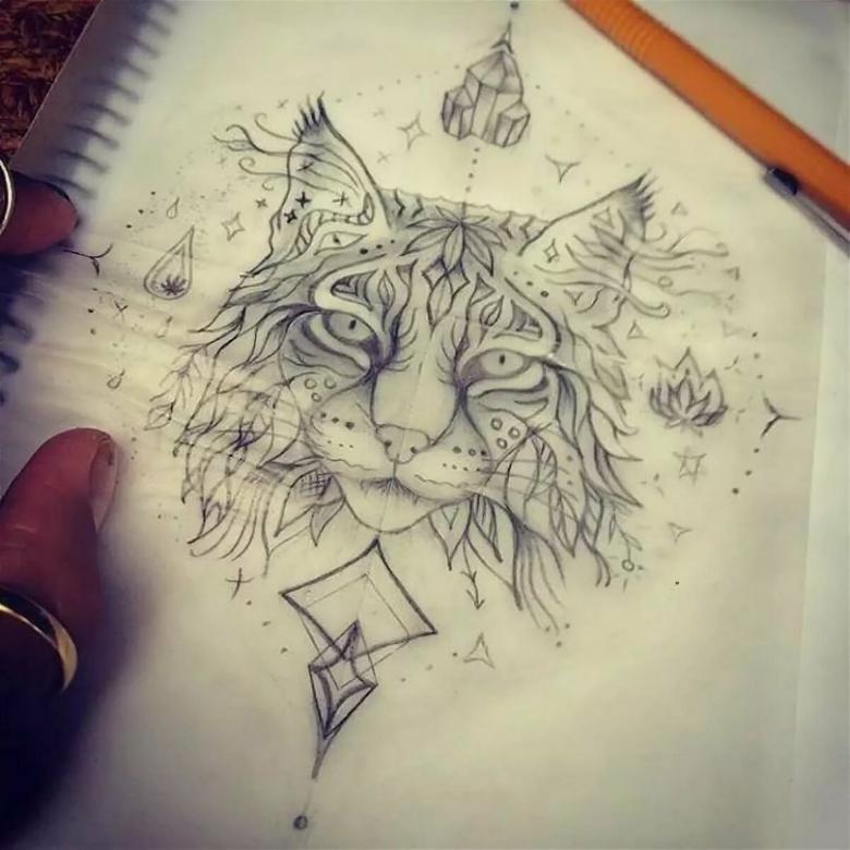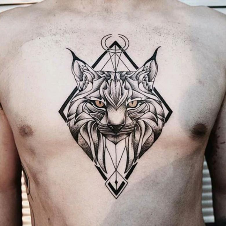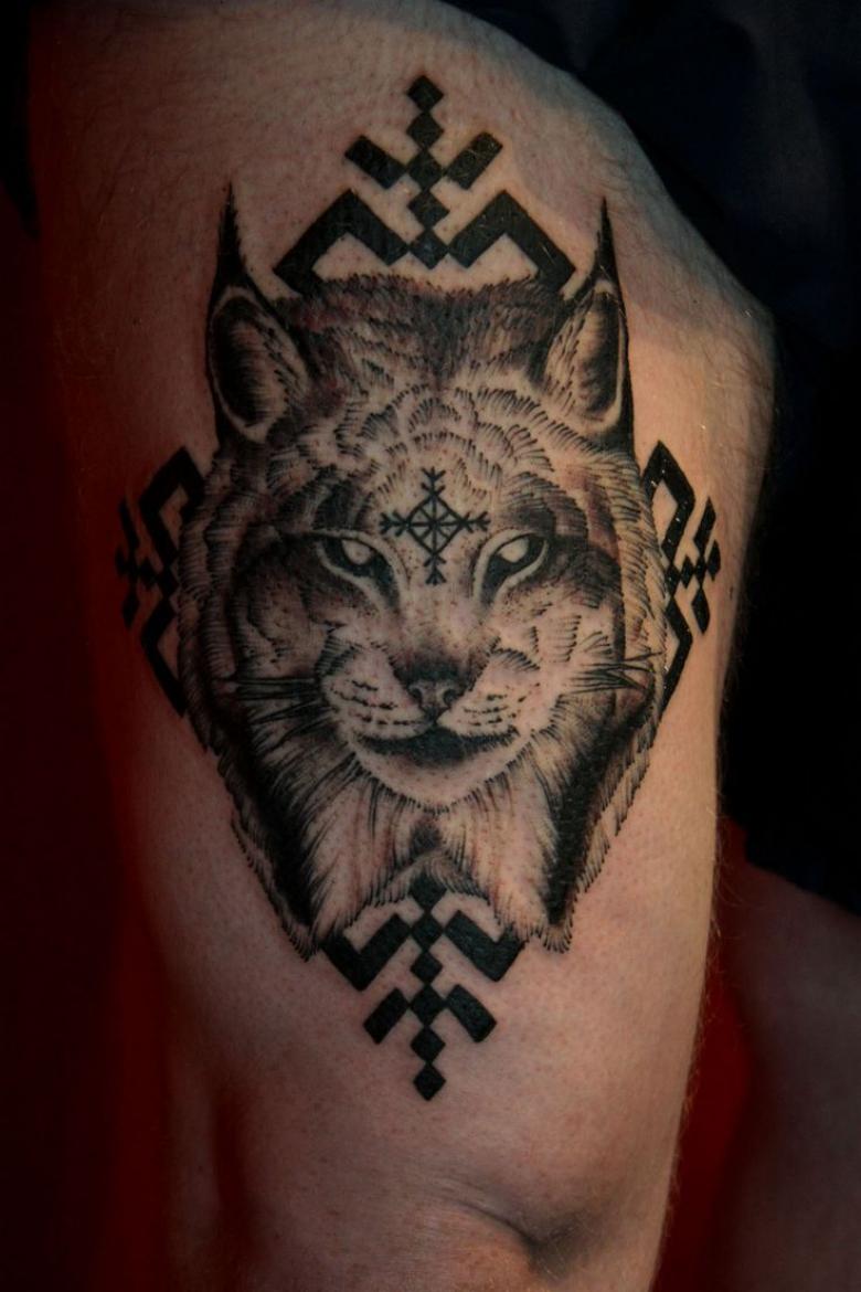 S'il veut de la vitesse, de la force, du courage, alors il peut s'attendre à ce que l'image d'un lynx l'aide à atteindre son objectif. Ce tatouage créé par un véritable maître fonctionnera comme un talisman ou une incantation d'un puissant sorcier.