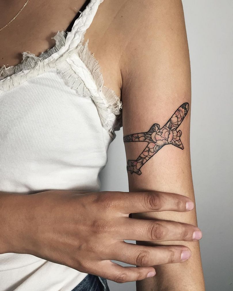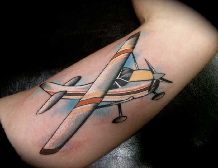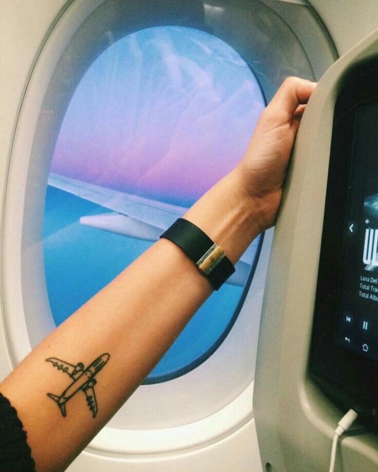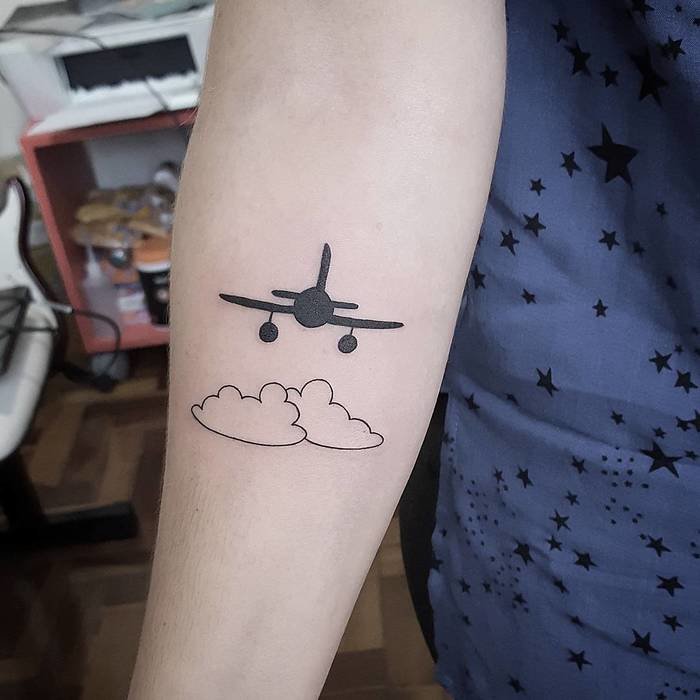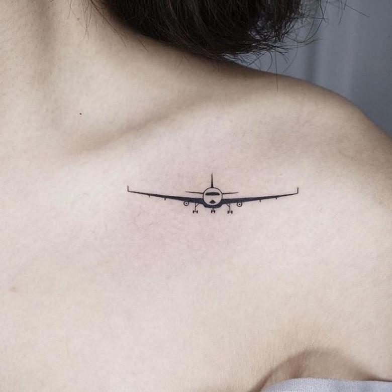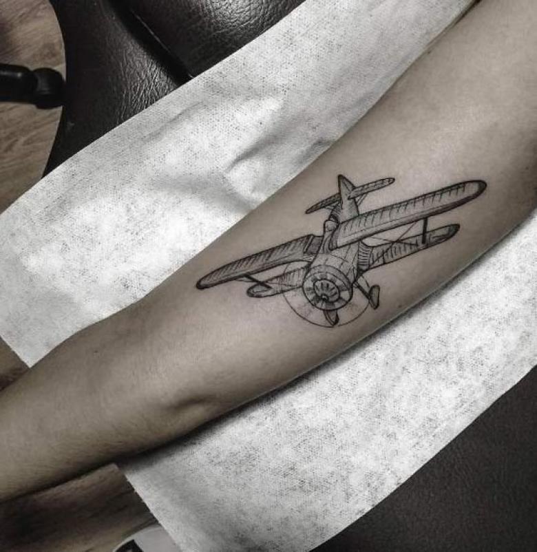 Un tatouage d'avion est une excellente option pour ceux qui ne peuvent pas vivre sans voyager, sans le ciel.