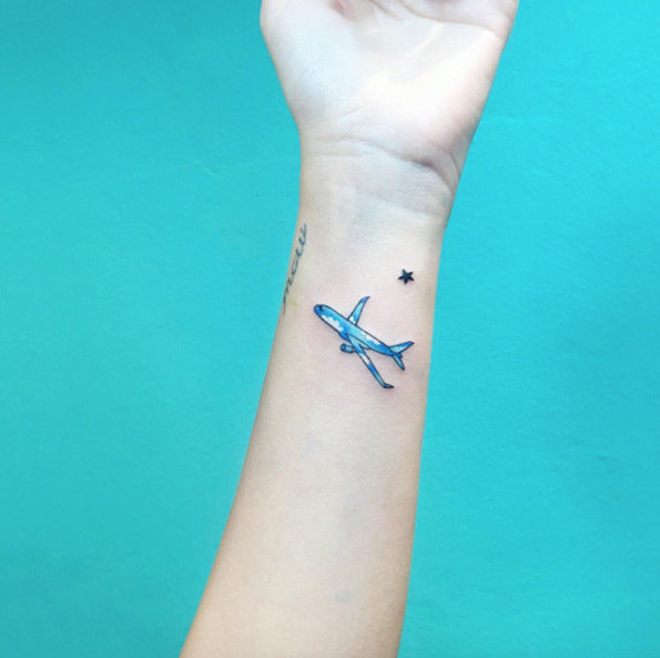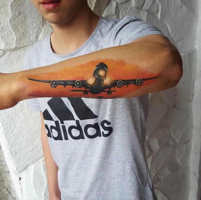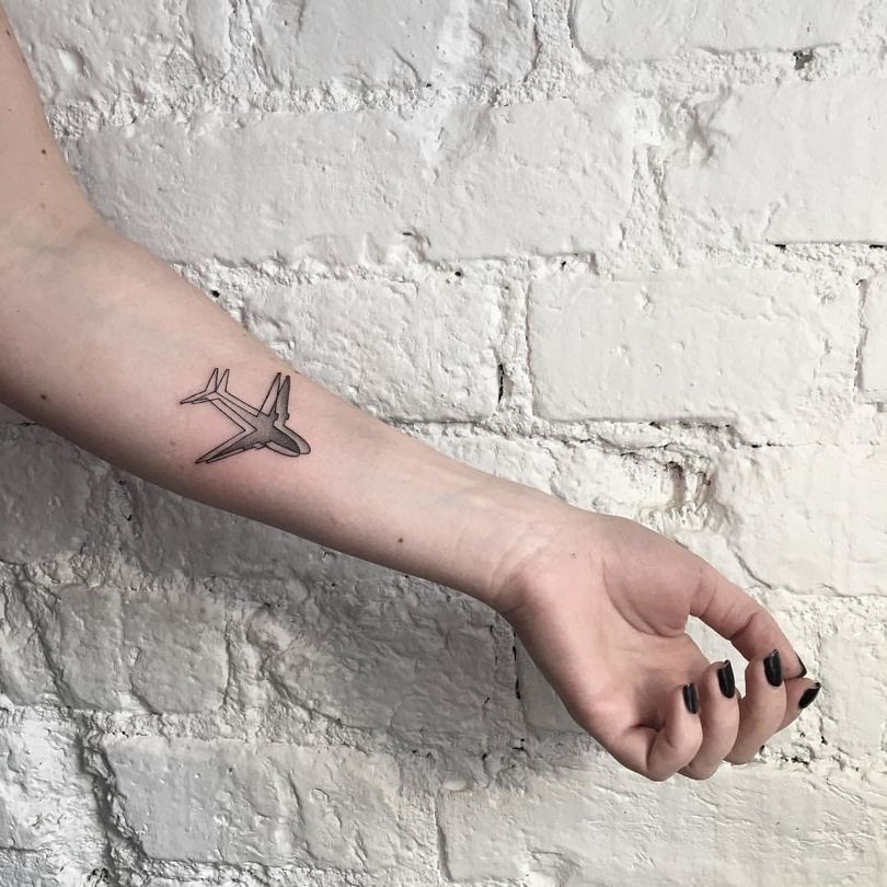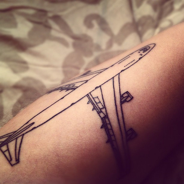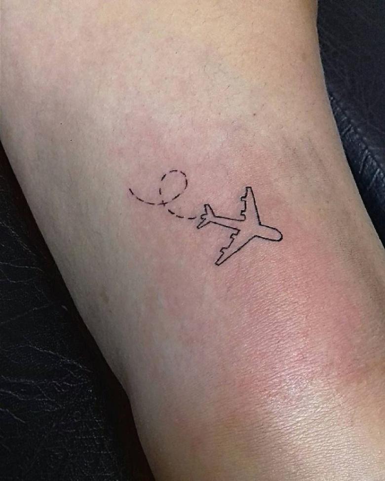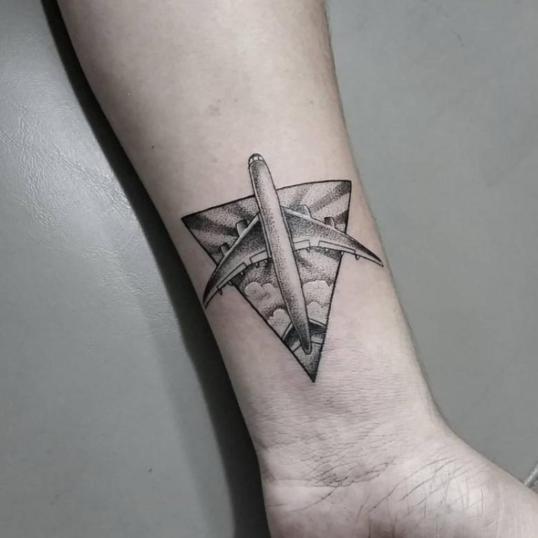 Un tatouage d'avion est une excellente option pour ceux qui ne peuvent pas vivre sans voyager, sans le ciel.