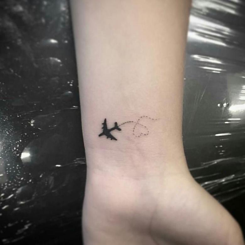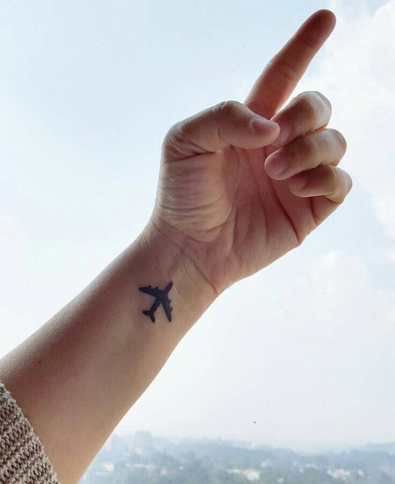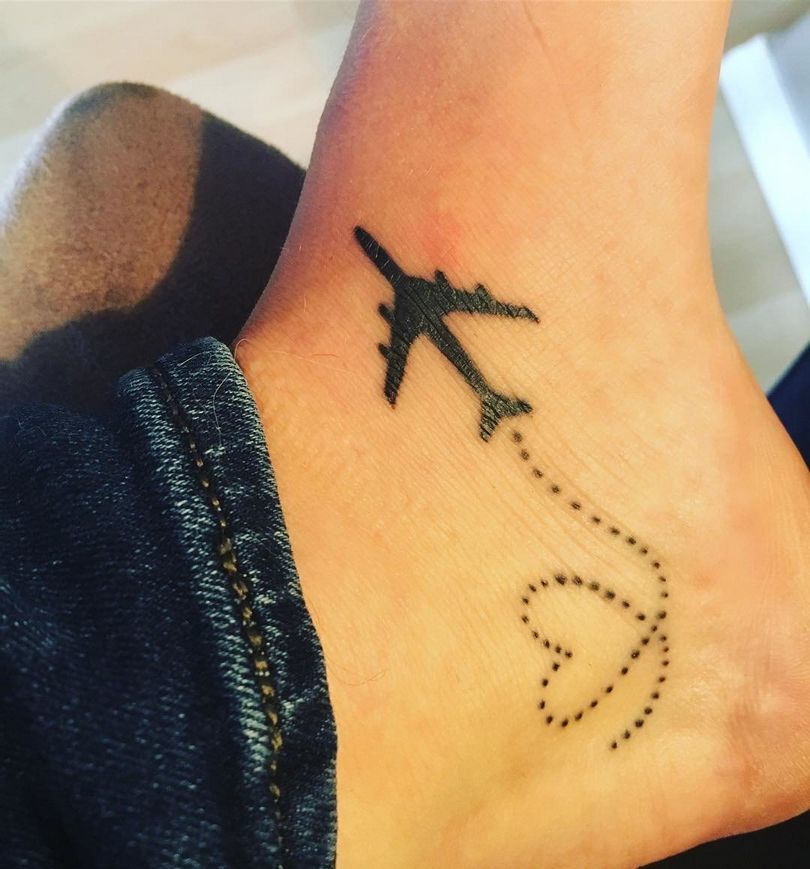 Tatouage avion - signification, placement (sur la main, le poignet, le pied), dessin du tatouage (papier, coeur avec un avion), idées de photos créatives
