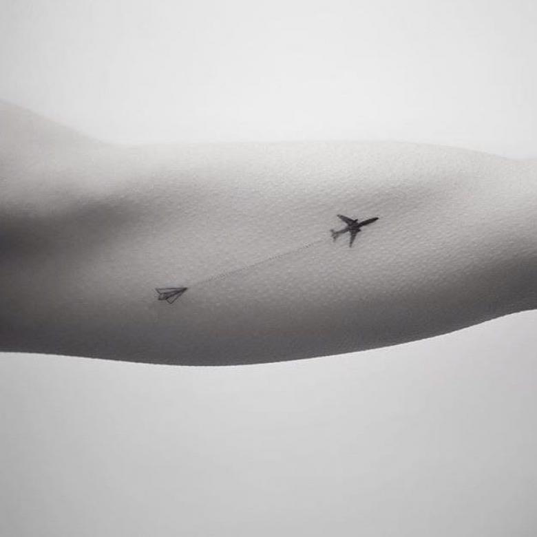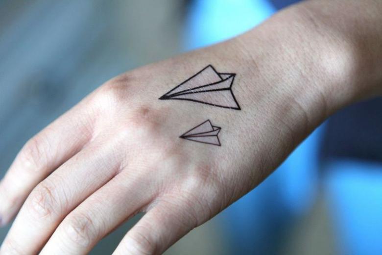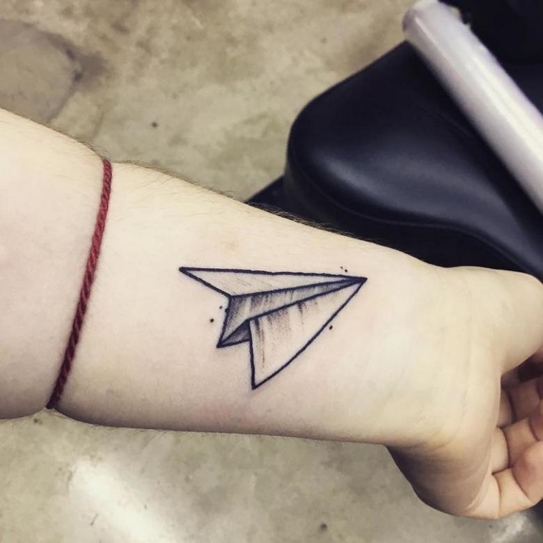 Les avions en papier rappellent les meilleures années et sont associés à l'enfance et aux souvenirs heureux et chaleureux. L'image d'un avion en papier sur le corps est choisie par les personnes naïves qui ont une âme lumineuse et ouverte, celles qui savent apprécier les différentes petites choses de la vie.