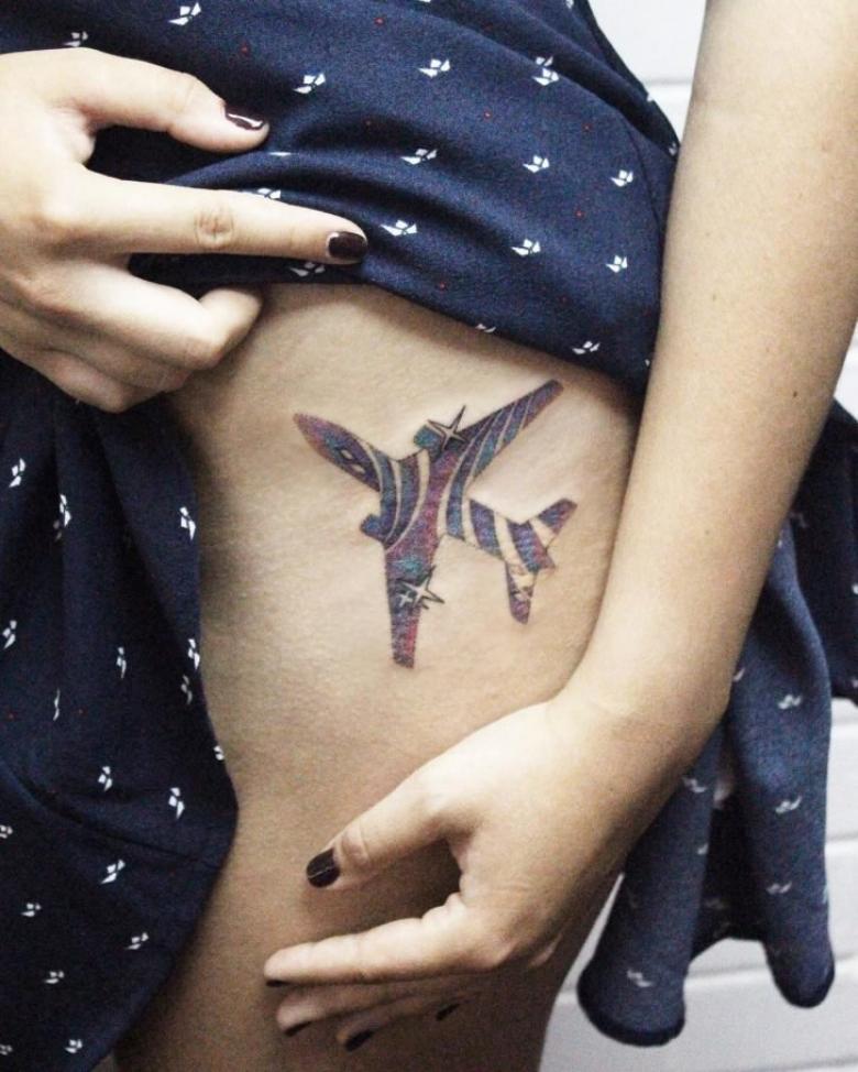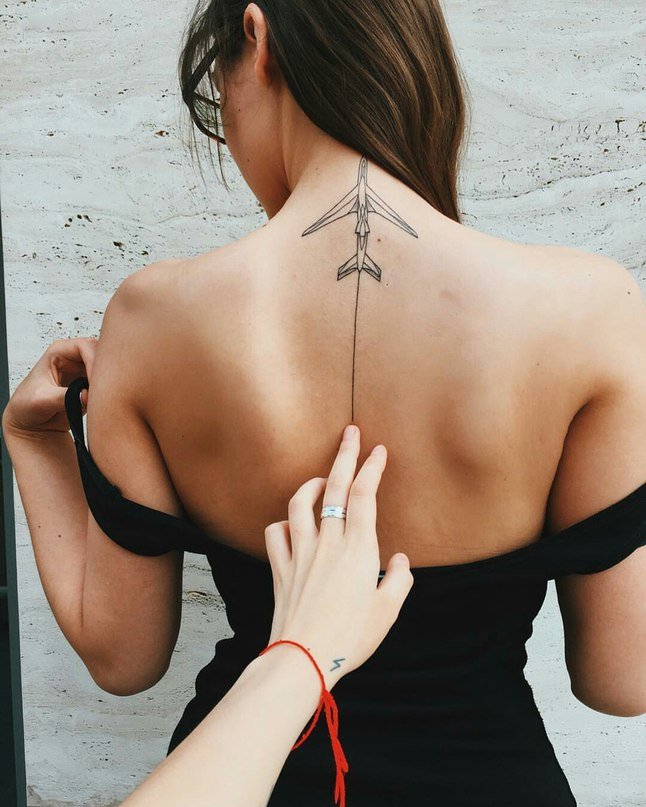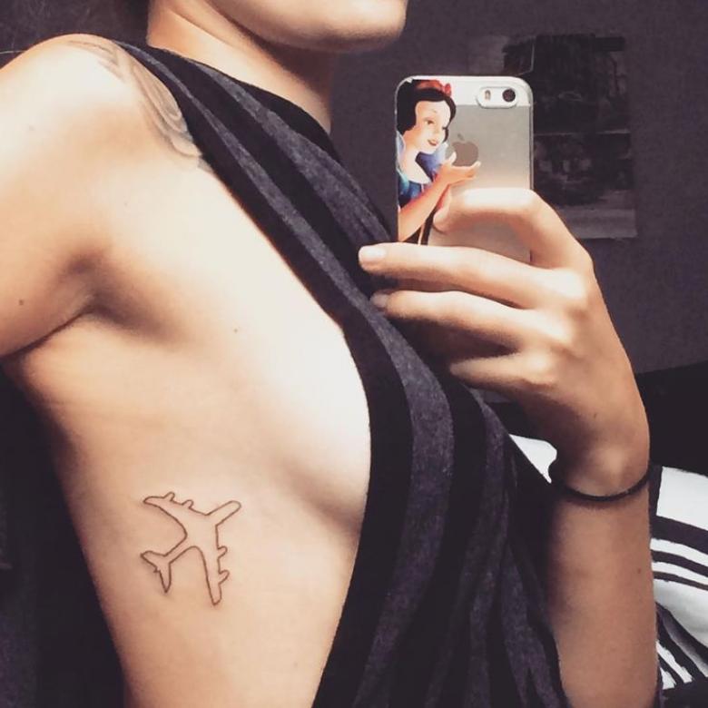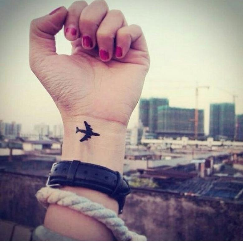 Presque toujours, la signification d'un sketch féminin est plus métaphorique. Il est rare que les filles choisissent un tatouage avec une vue réaliste d'un avion. Il s'agit presque toujours d'une image minimaliste en noir, et dans certains cas, c'est juste un contour. Le tatouage signifie la liberté, la volonté de changer, l'envie de rêver, d'aimer, de voyager.