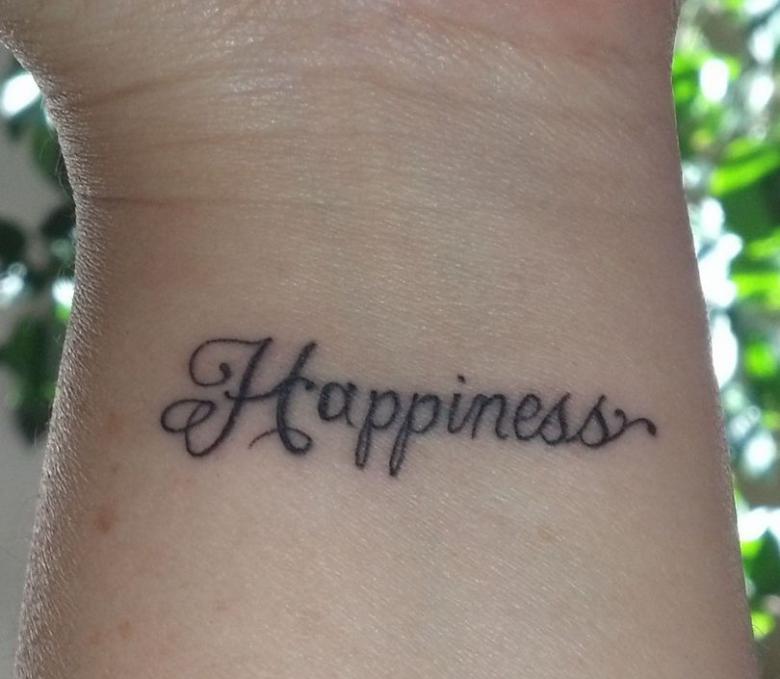 Tattoo Happiness - une liste d'images et d'inscriptions (bonheur, bonne chance, amour, richesse), le lieu d'application, des croquis amusants et des photos