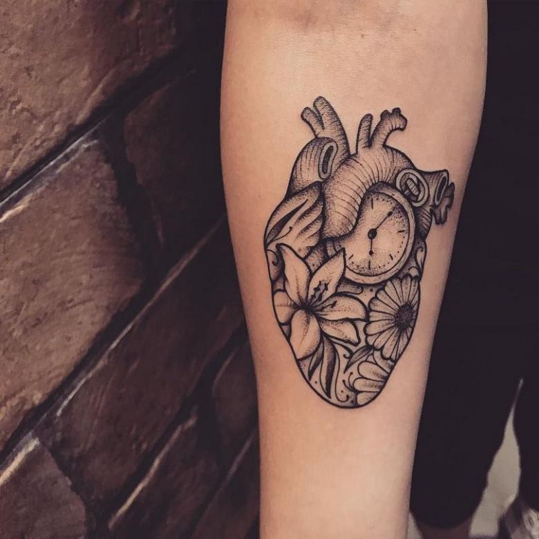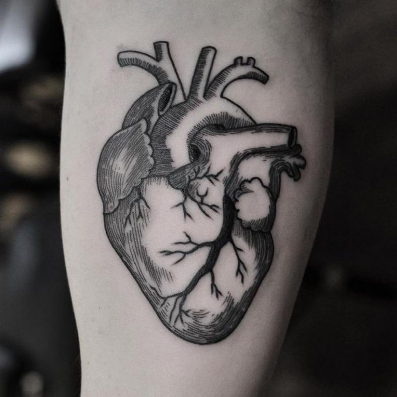 Tattoo Heart - Signification et signification des tatouages pour les filles et les hommes, placement (sur la main, le poignet, le doigt, la poitrine), idées de photos inspirantes.