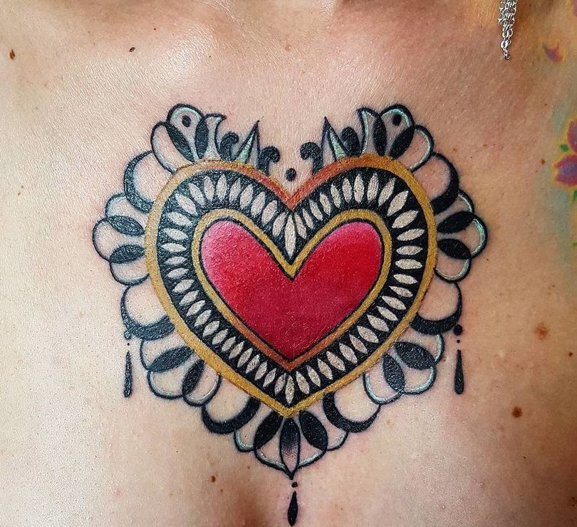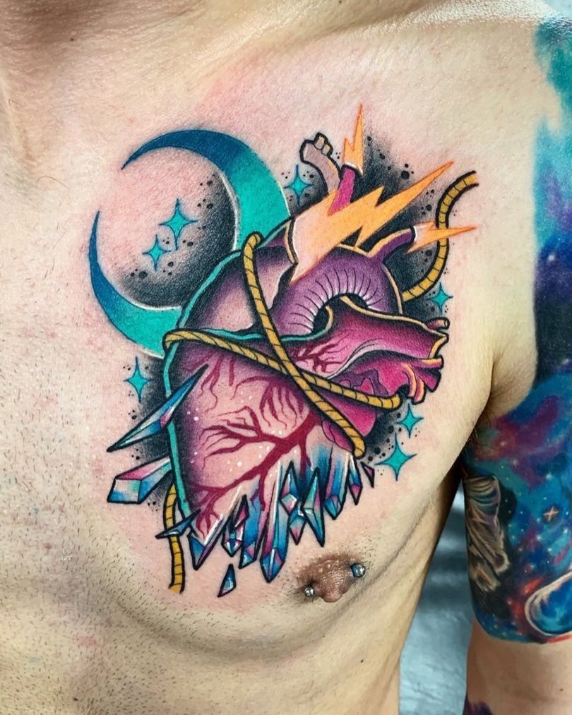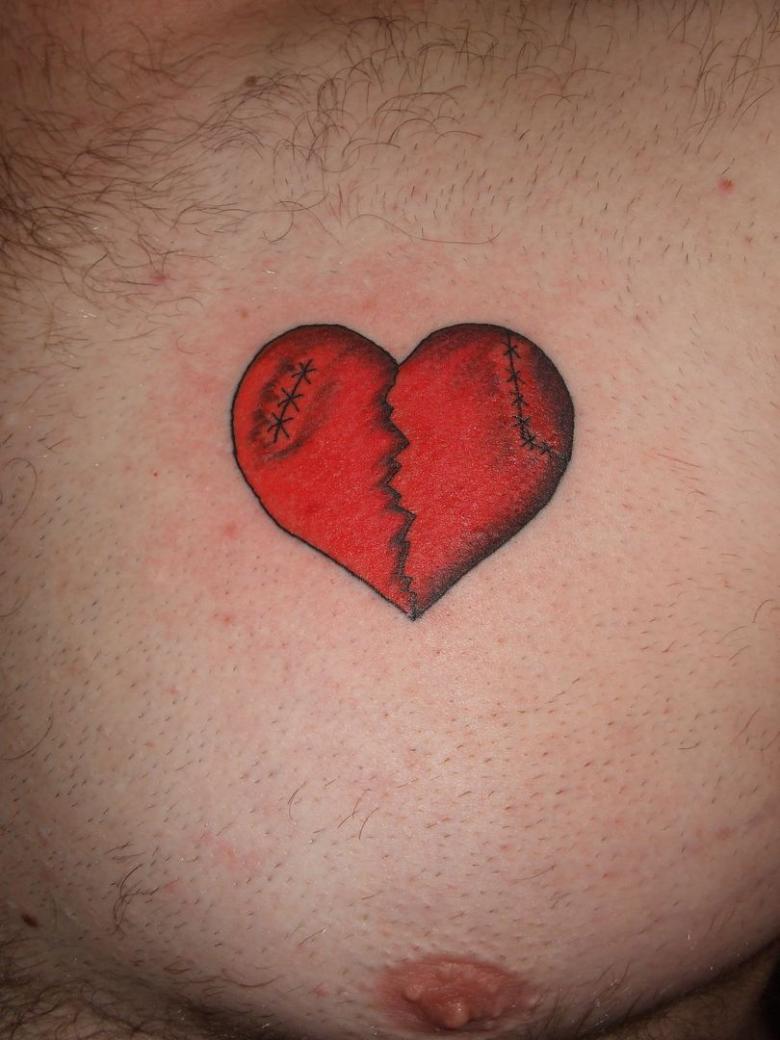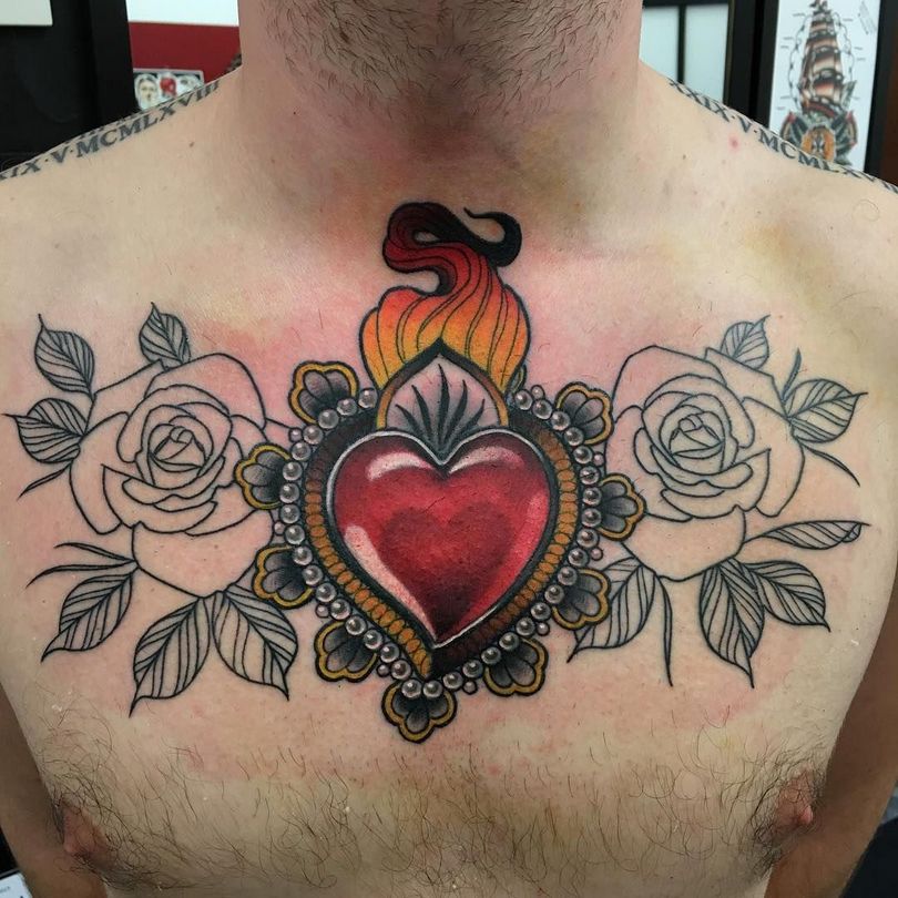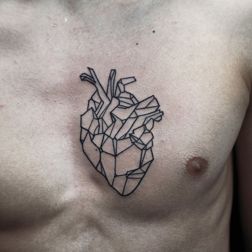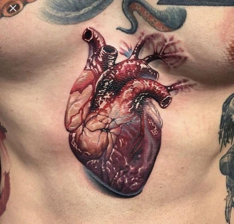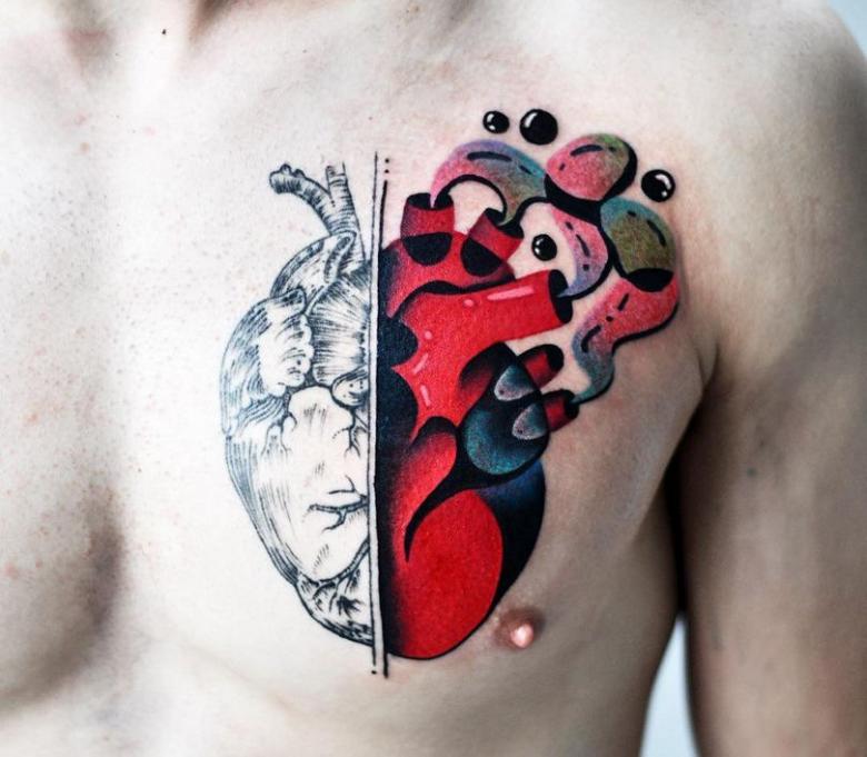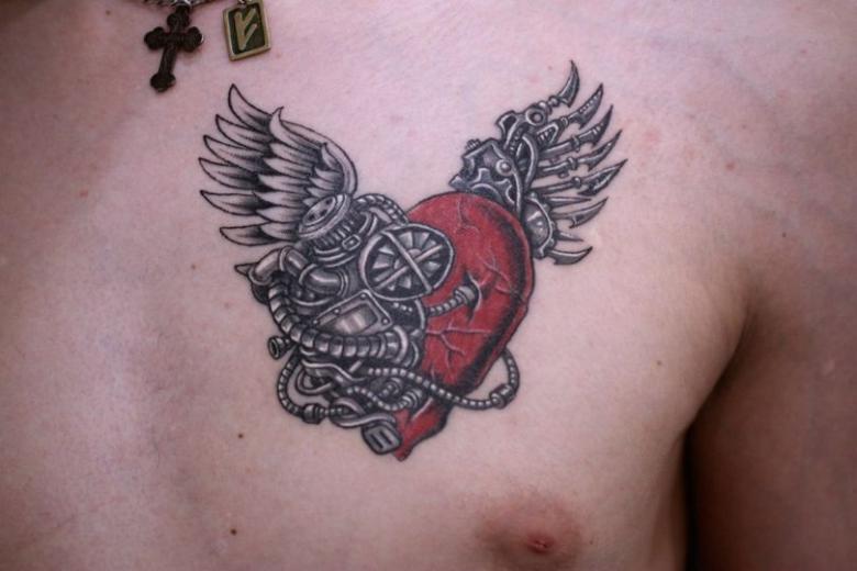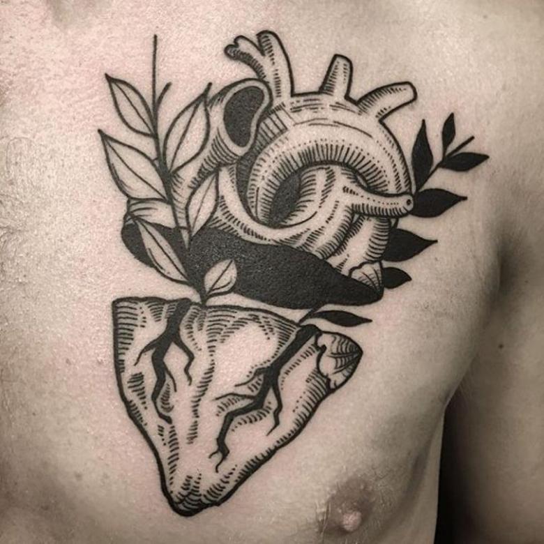 Pour les hommes, la poitrine, qui est plus proche du cœur réel, est l'endroit préféré pour le tatouage.
