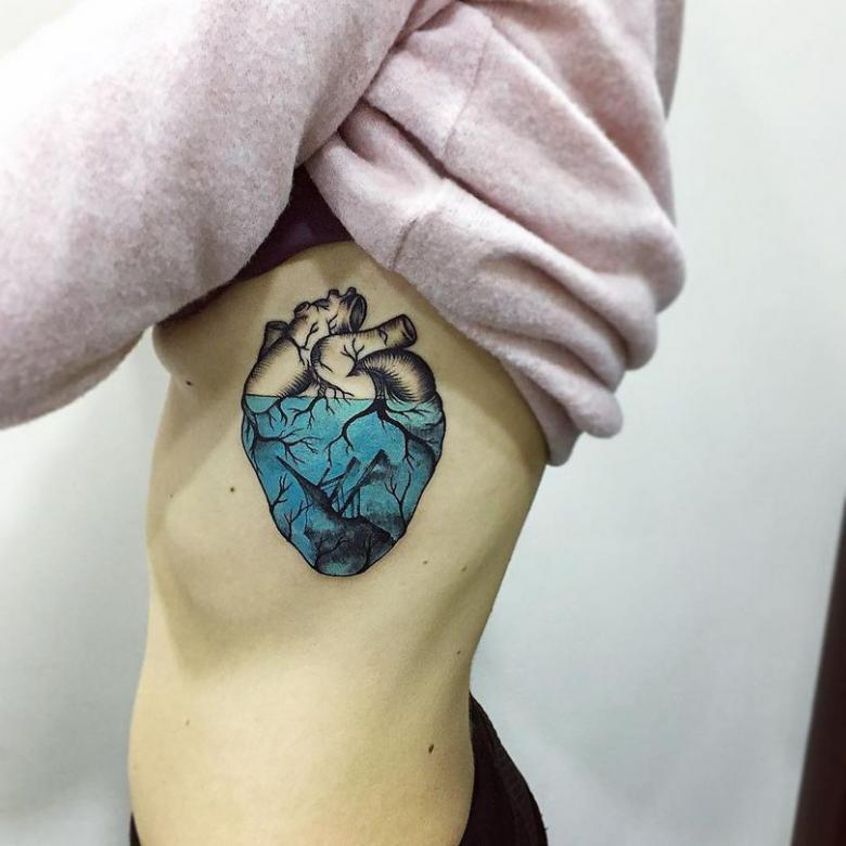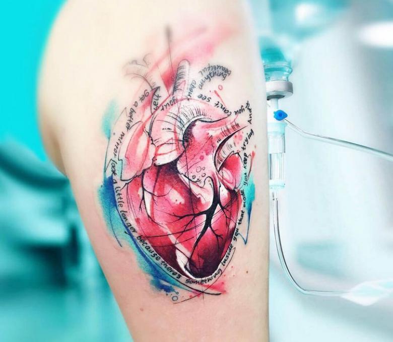 Une personne peut représenter un cœur ordinaire, non complété par quoi que ce soit, mais par une certaine couleur qui soulignera la signification du tatouage :