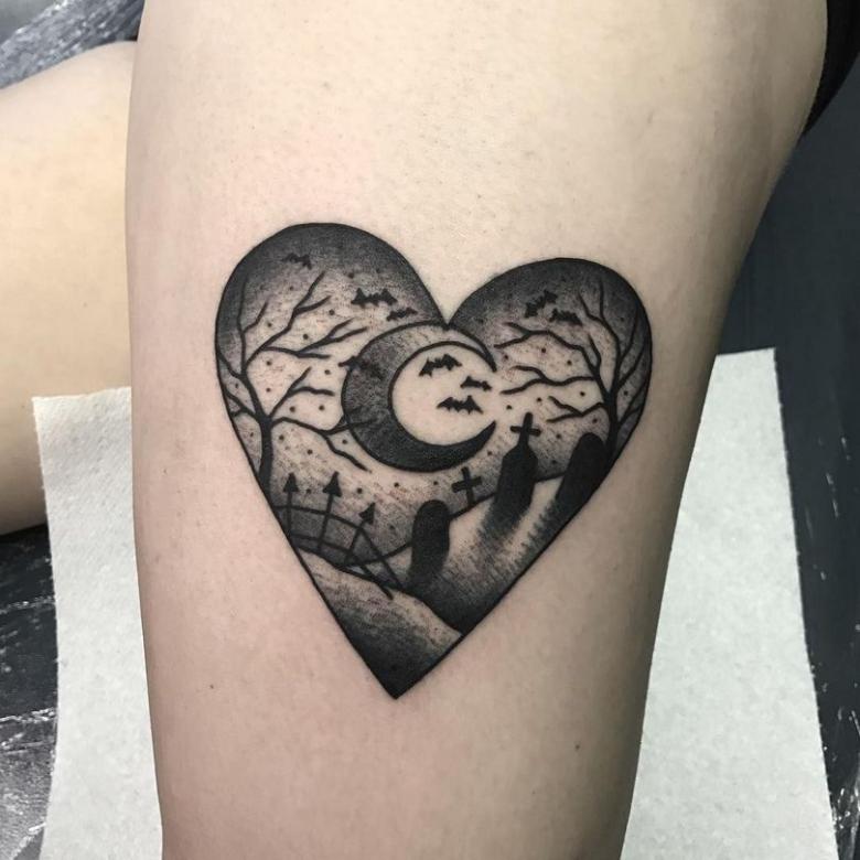 - Un cœur noir. A une signification extrêmement triste. En général, il s'agit de la perte d'un être cher ou d'un parent qui était très cher au porteur. Et le tatouage est un souvenir éternel d'amour pour lui.