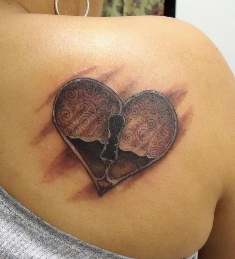 - Un cœur avec un trou de serrure. Ce tatouage se présente comme un individu ou un couple, respectivement, a deux interprétations :